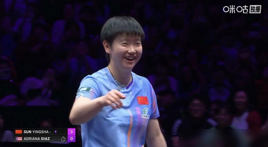 迪亚兹跟我玩花活儿?孙颖莎反手一板、正手一板,直接把好姐妹打到憋笑,场下的马琳都看乐了。 第三局关键分,迪亚兹突然手腕一抖,搓了个匪夷所思的台内小球,想把你的节奏彻底打乱。 莎莎压根不接招,身体一蹲,反手直接拧了过去。迪亚兹不信邪再来一个,莎莎直接侧身爆冲,球快得像一道光。 这才是最高级的尊重:用最狠的发力,回敬你最野的想象力;用最真的笑容,感谢你最强的攻击力。