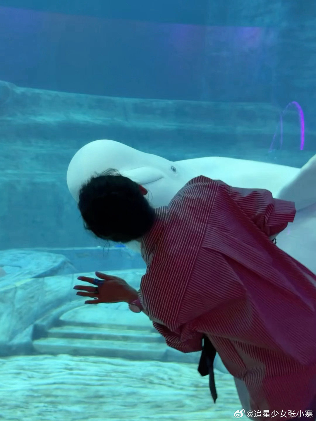 张柏芝定格幸福时刻白鲸都忍不住和张柏芝贴贴 张柏芝的三亚plog太治愈了,对着白鲸伸手互动的样子好有爱,连白鲸都忍不住贴贴,背影里的欢乐藏都藏不住,姐姐好年轻。