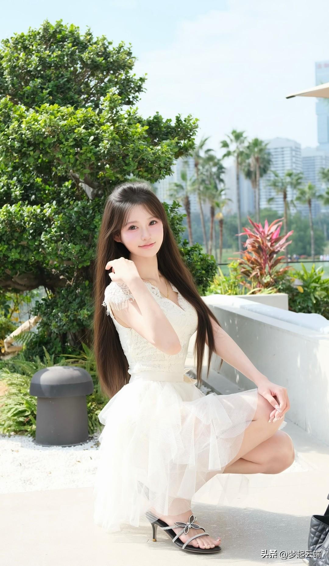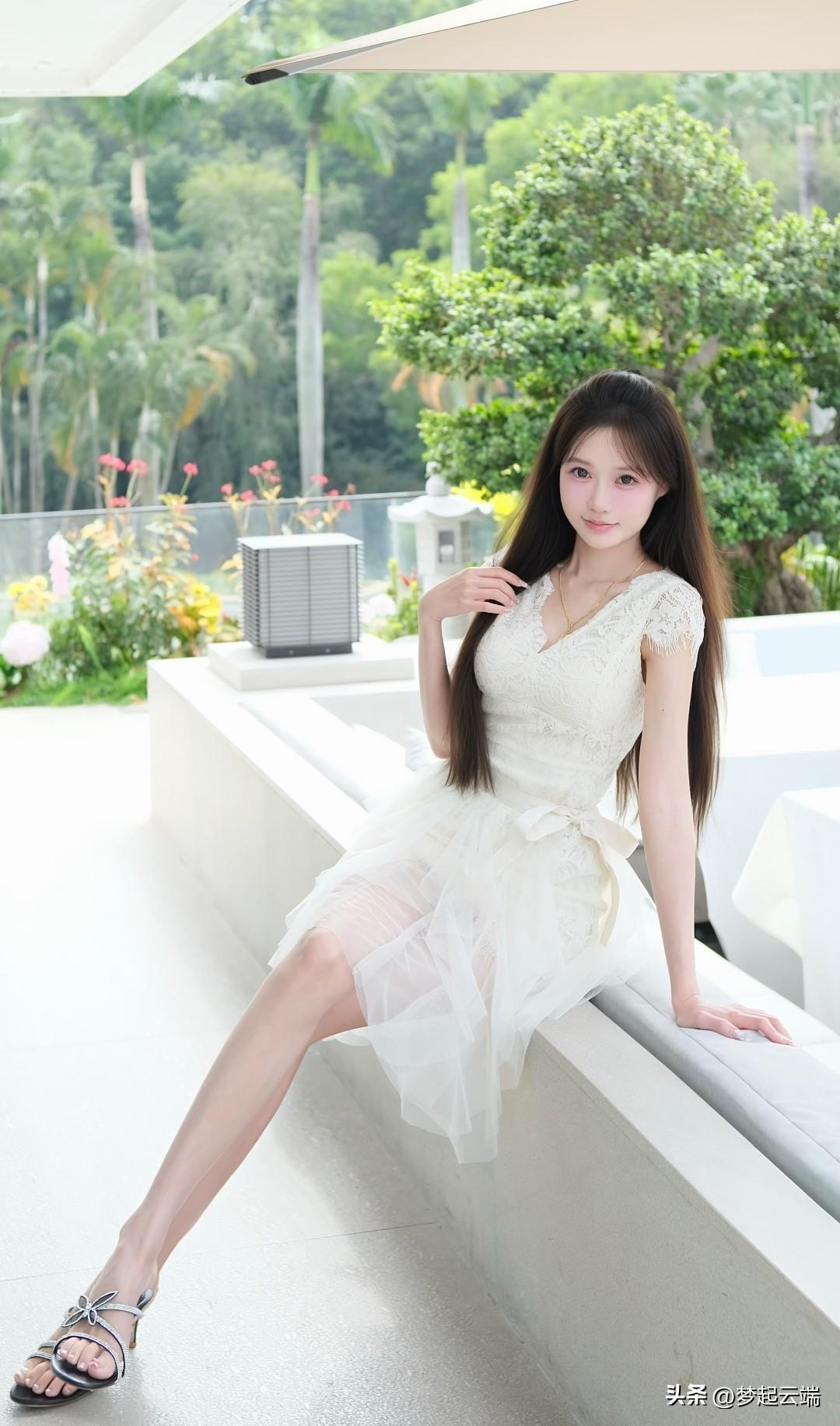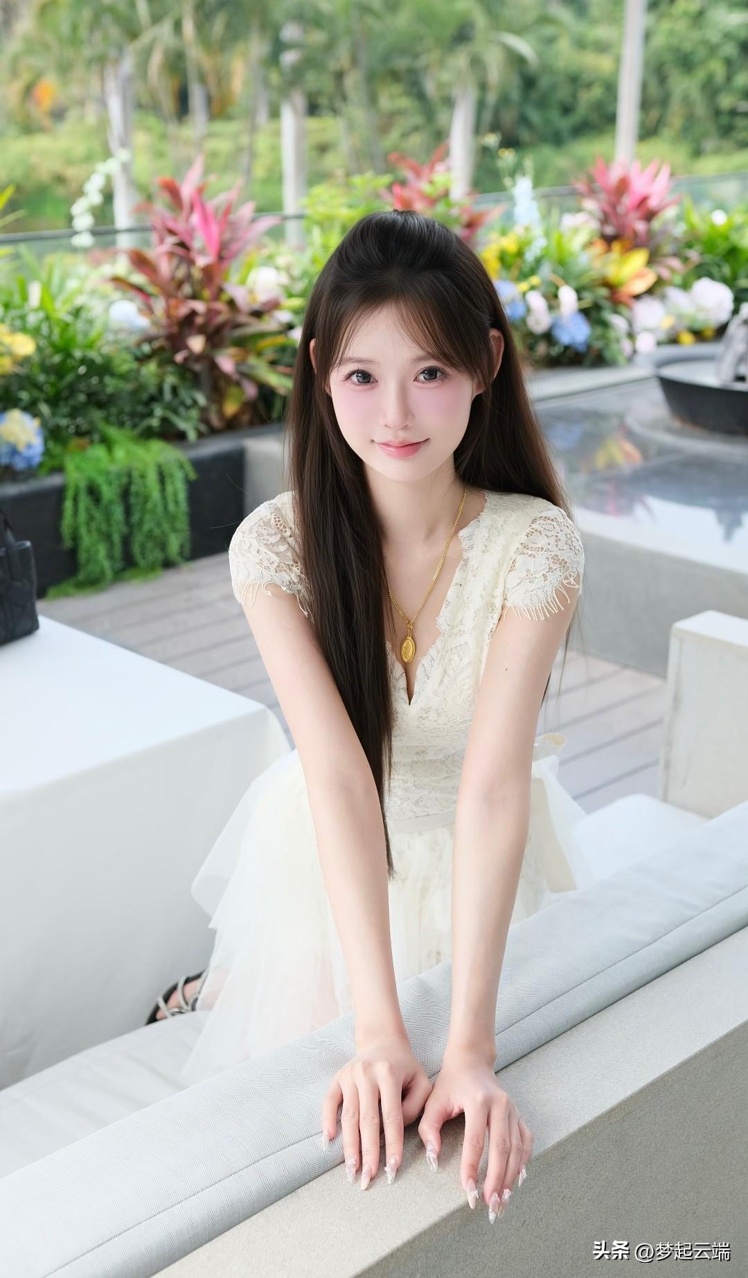 夏日,粉色连衣裙与绿植的完美结合,尽显优雅与自然之美。