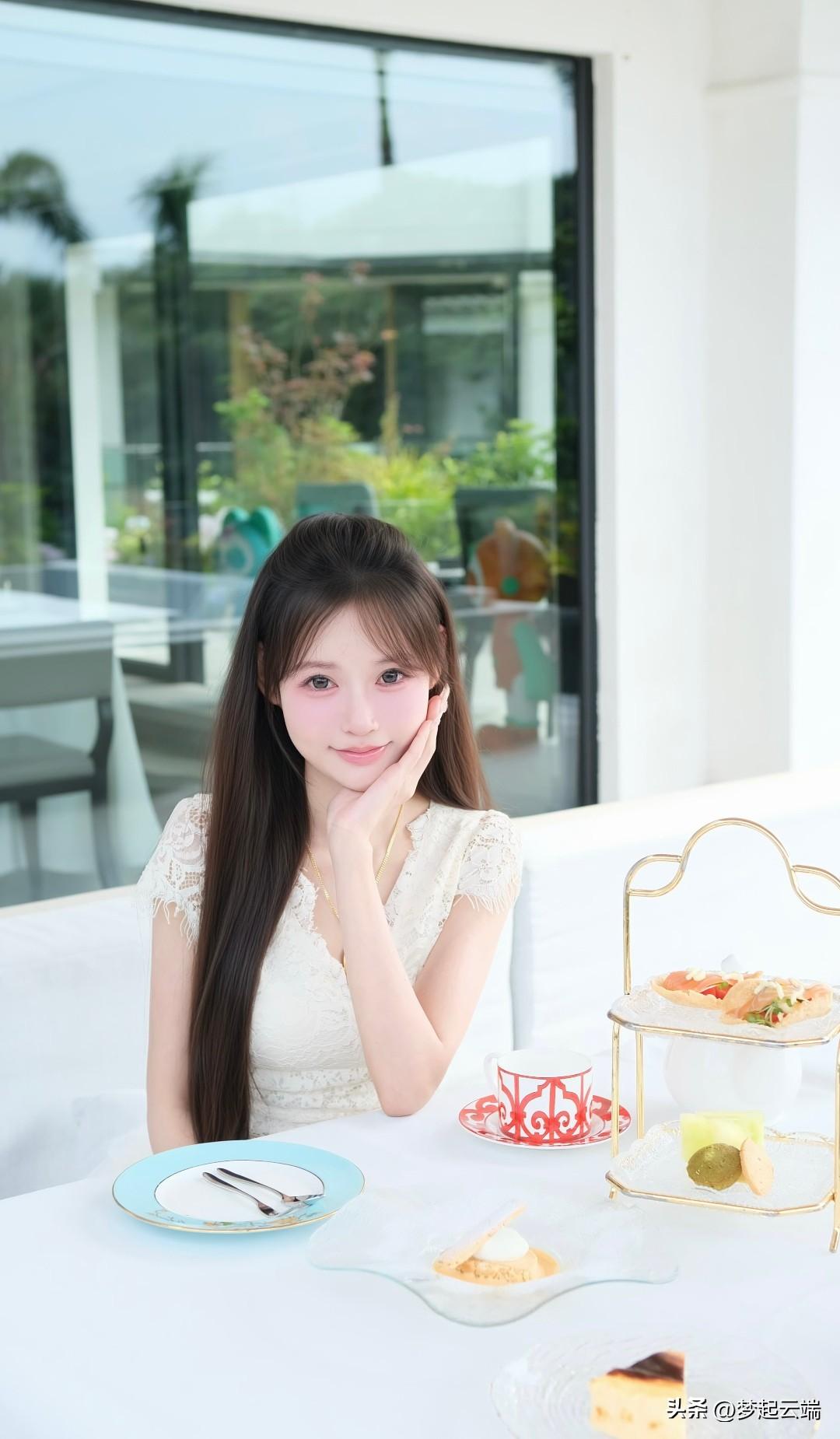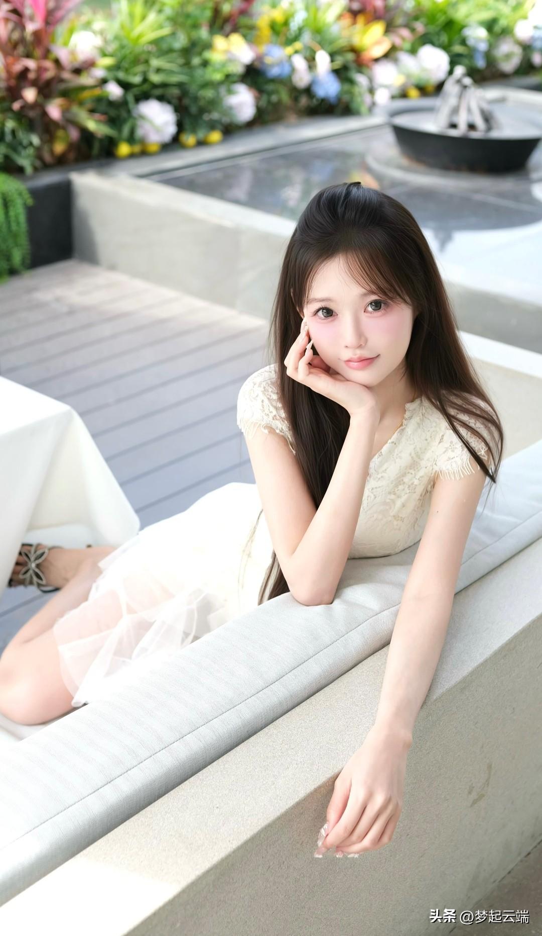 温柔甜美的女孩,在花园中享受宁静时光。