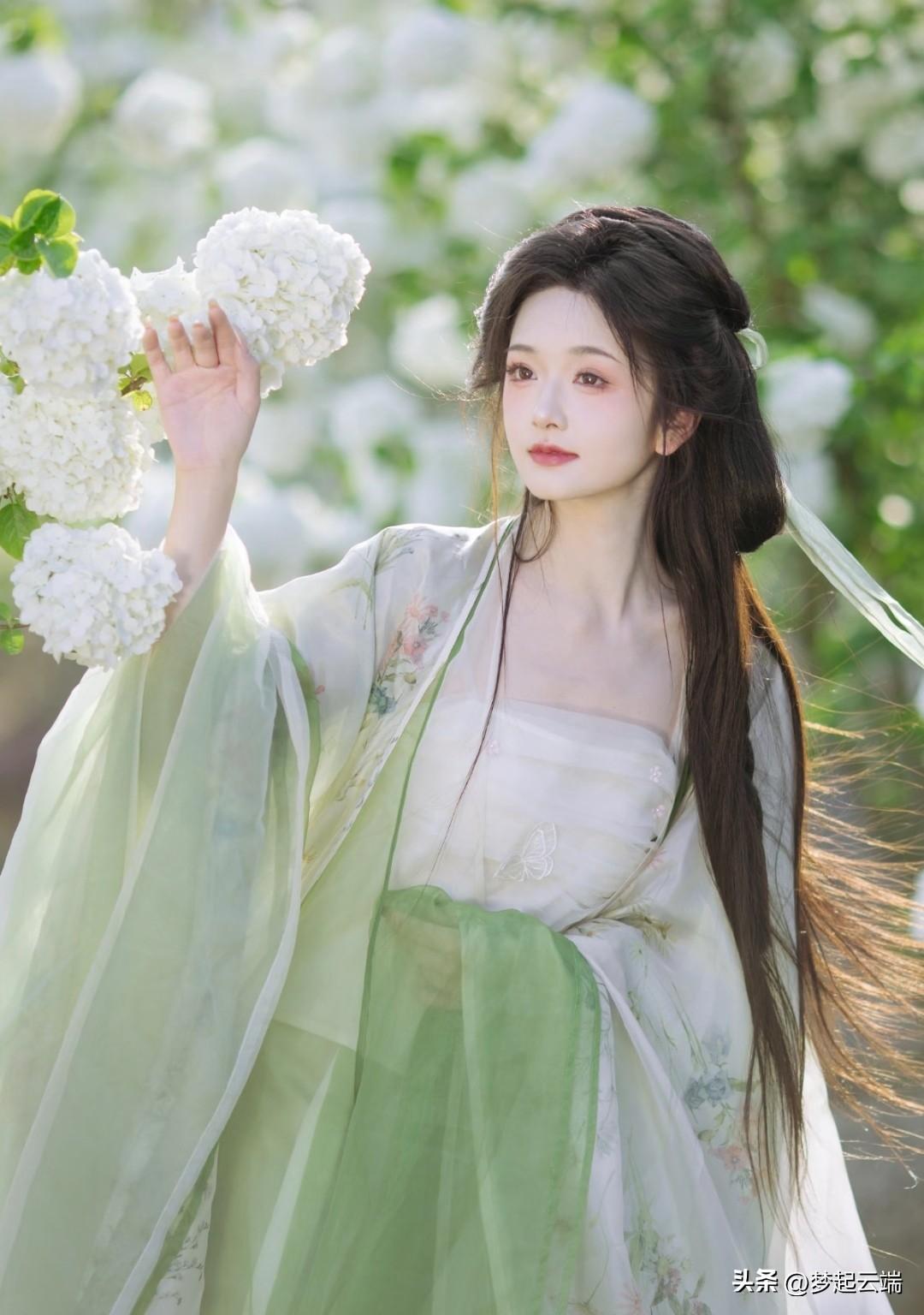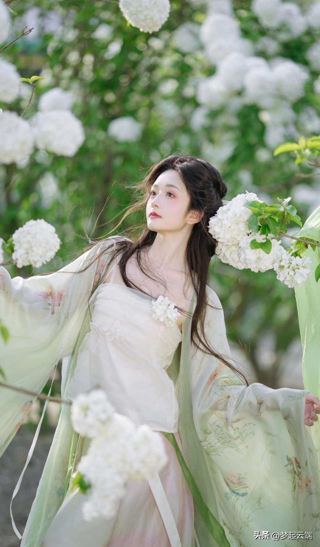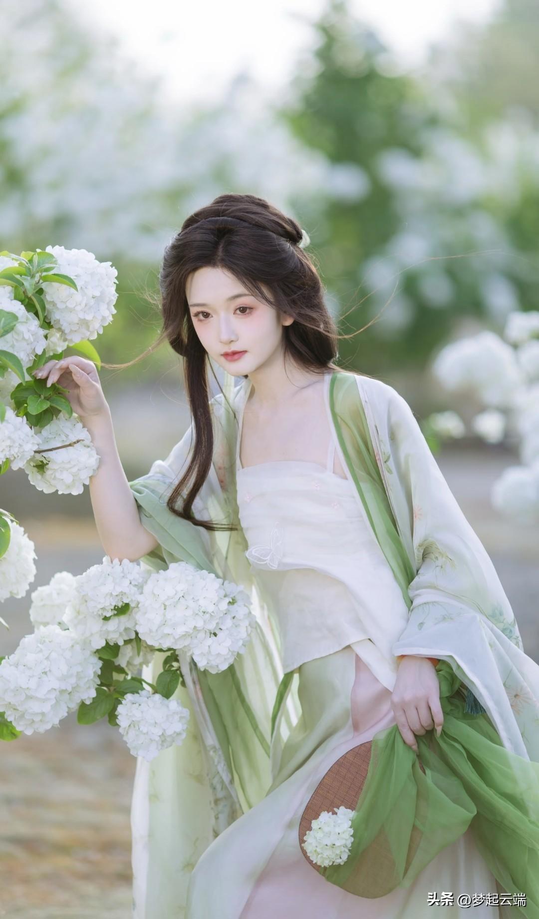 梦幻古风少女,手持团扇,花丛中悠然自得。