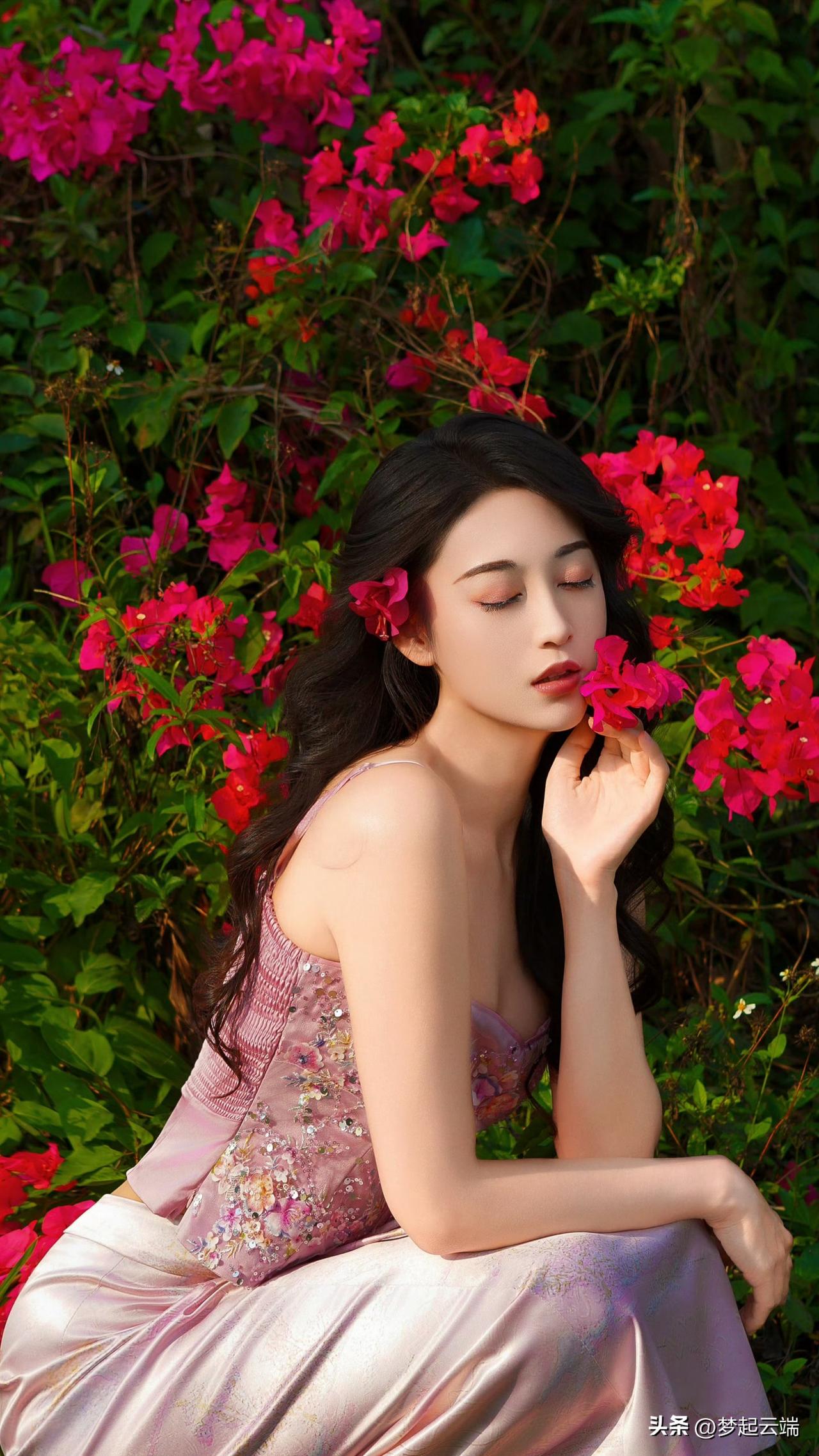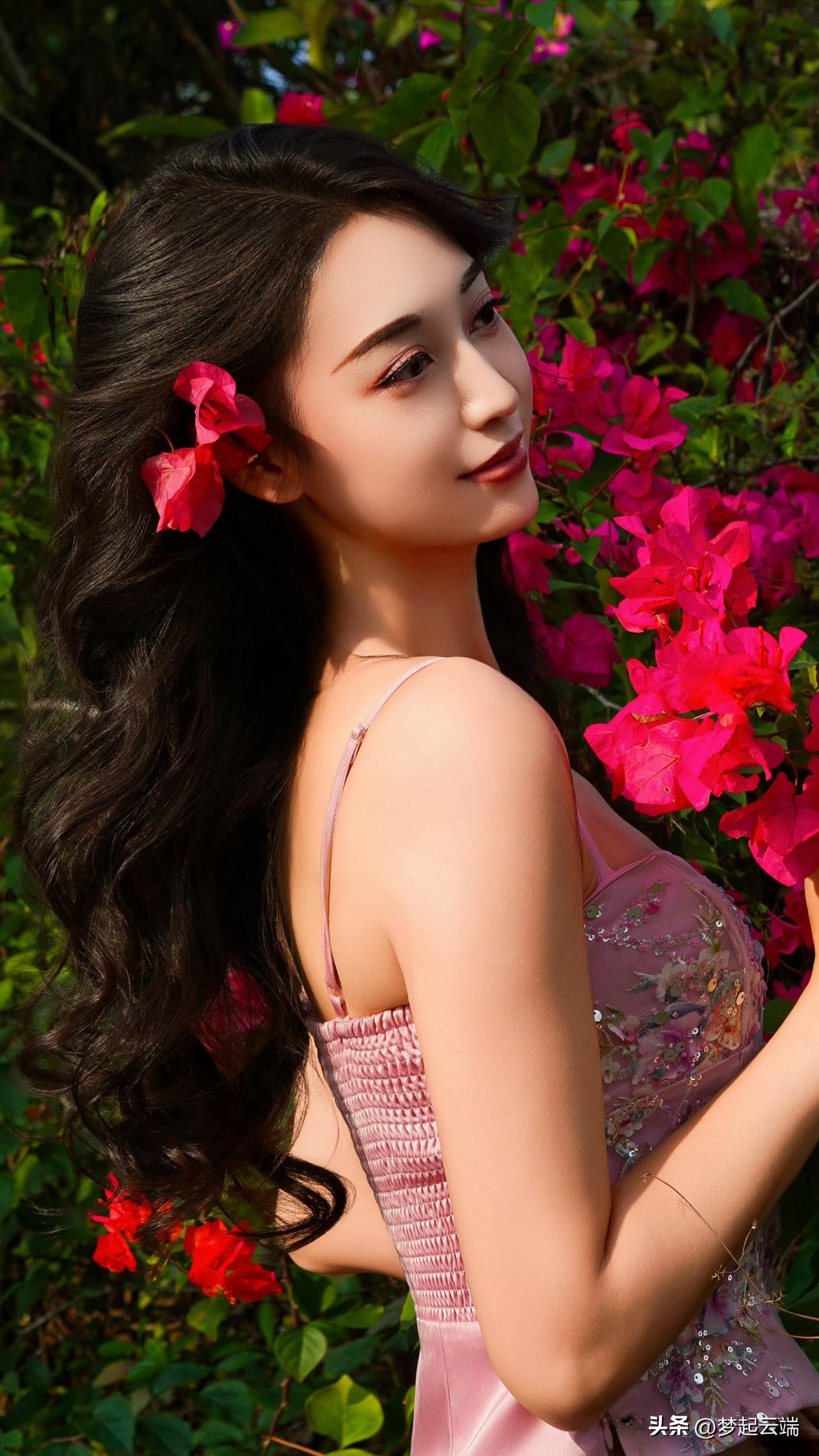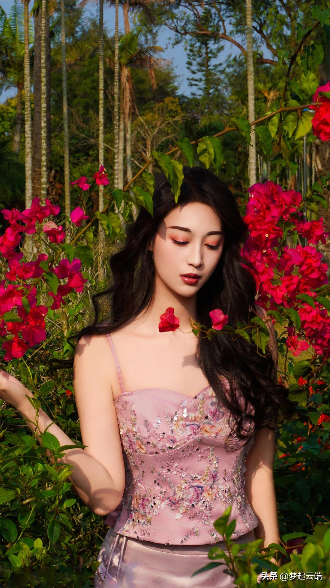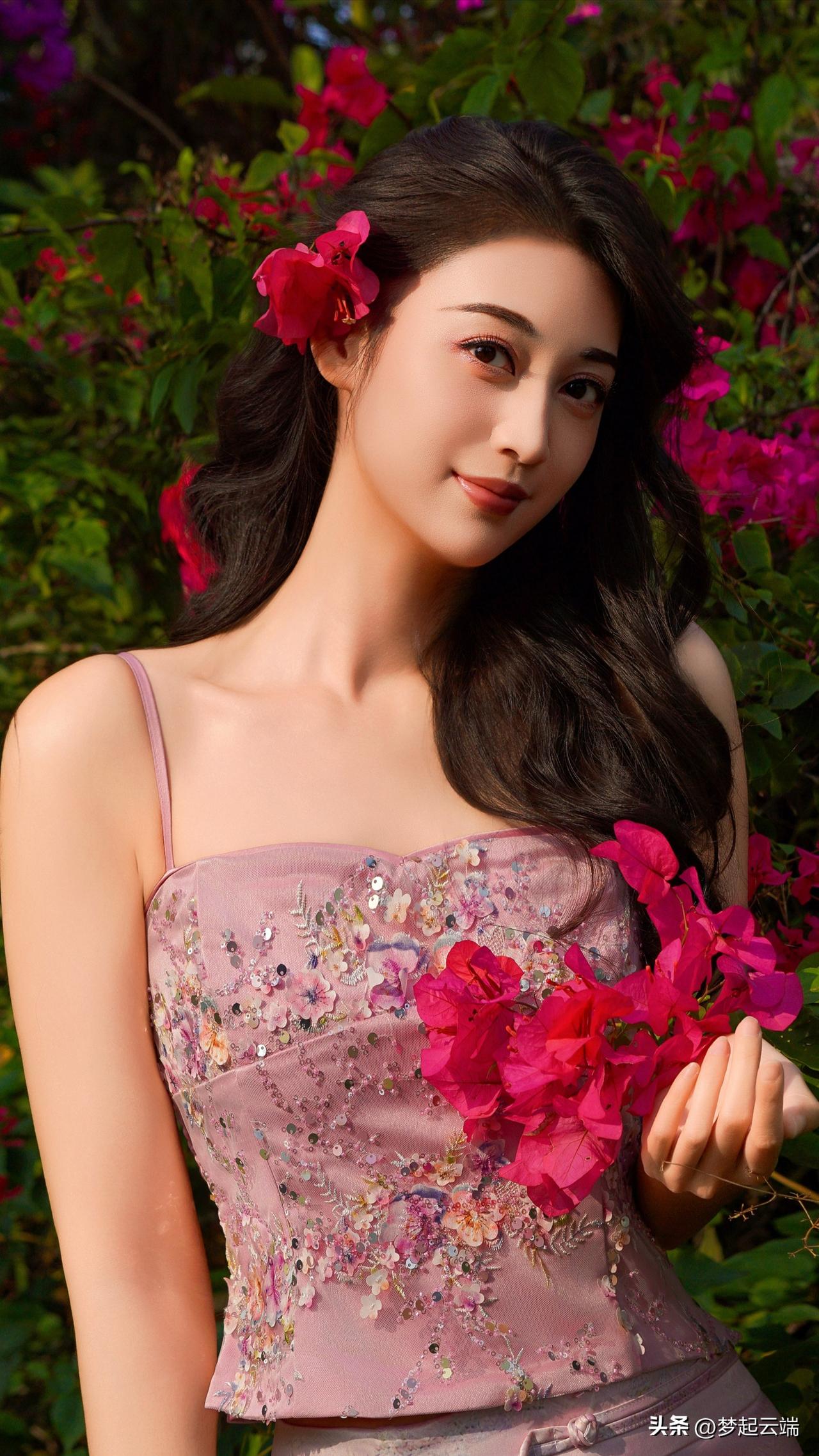 粉嫩少女与花海相映成趣,美得令人窒息!🌸💕