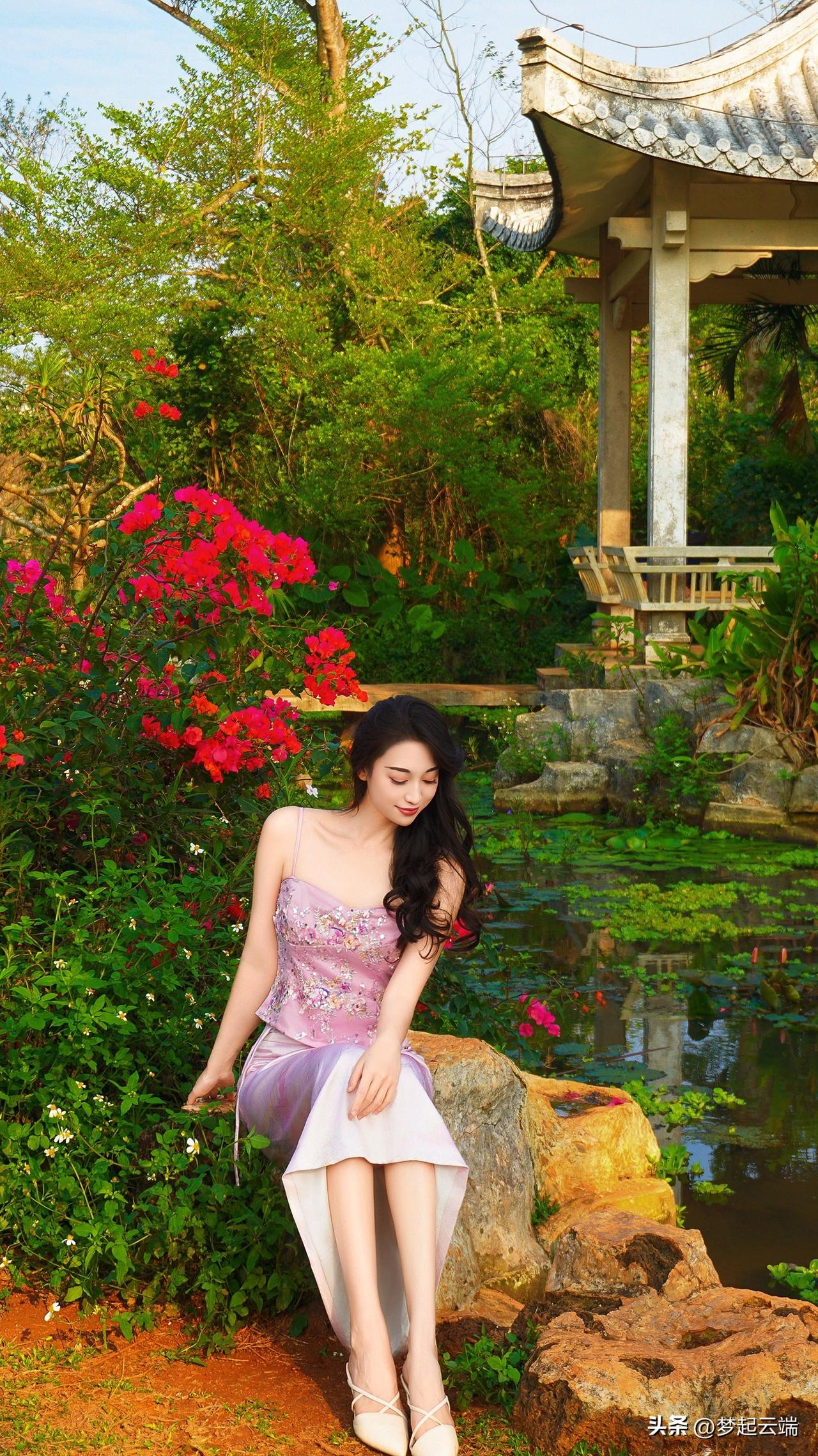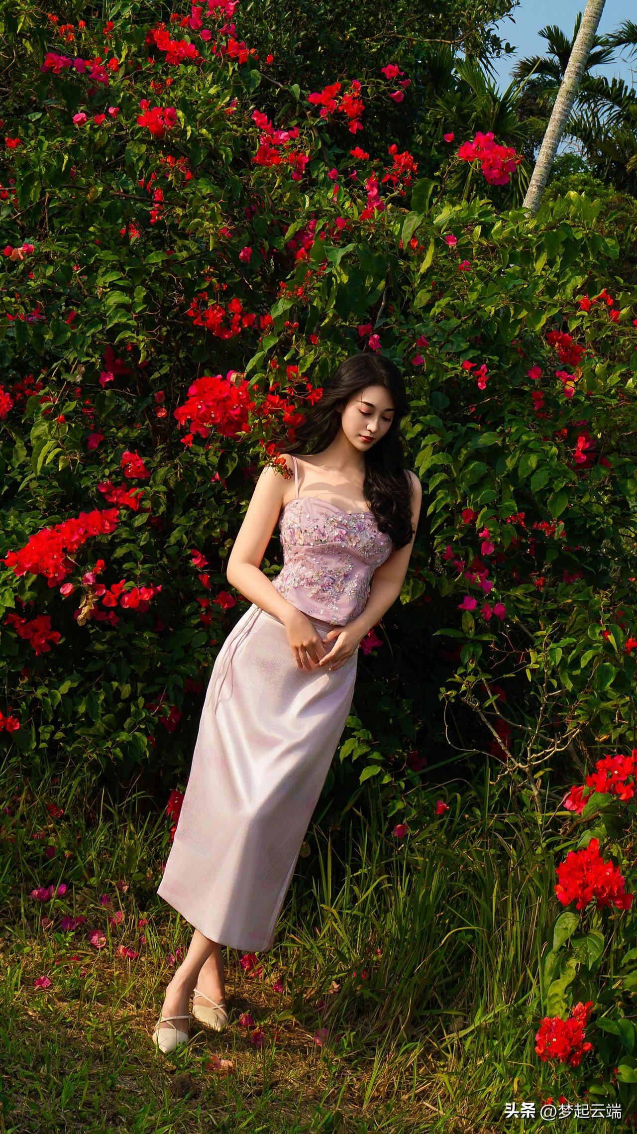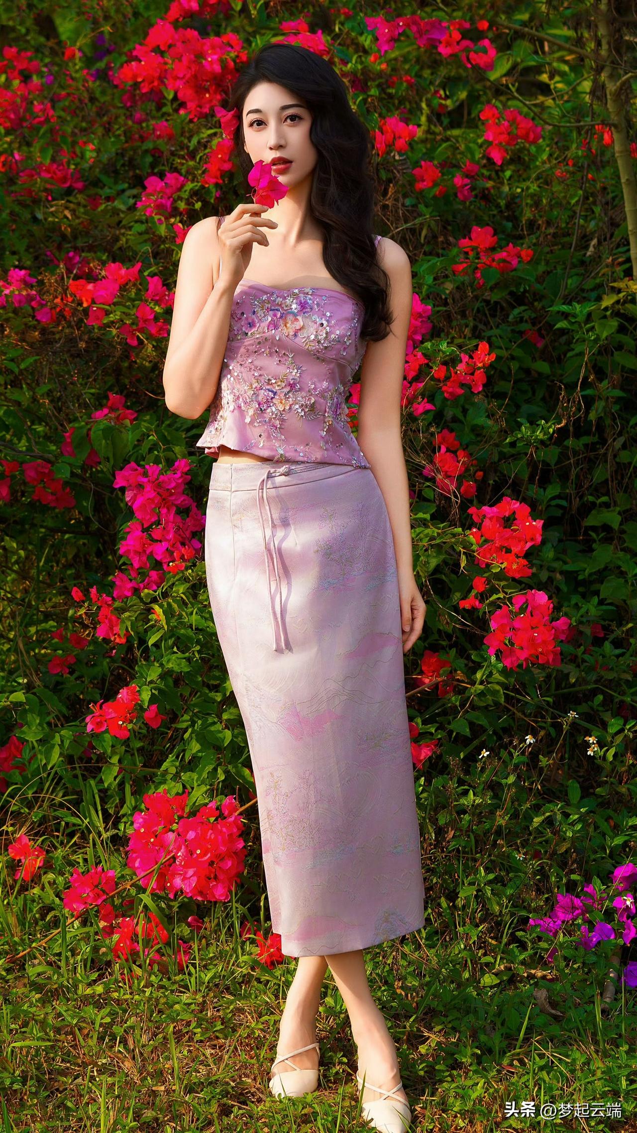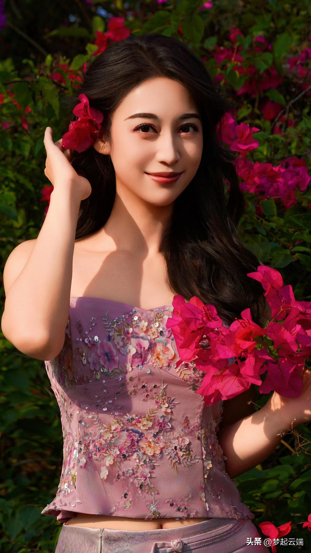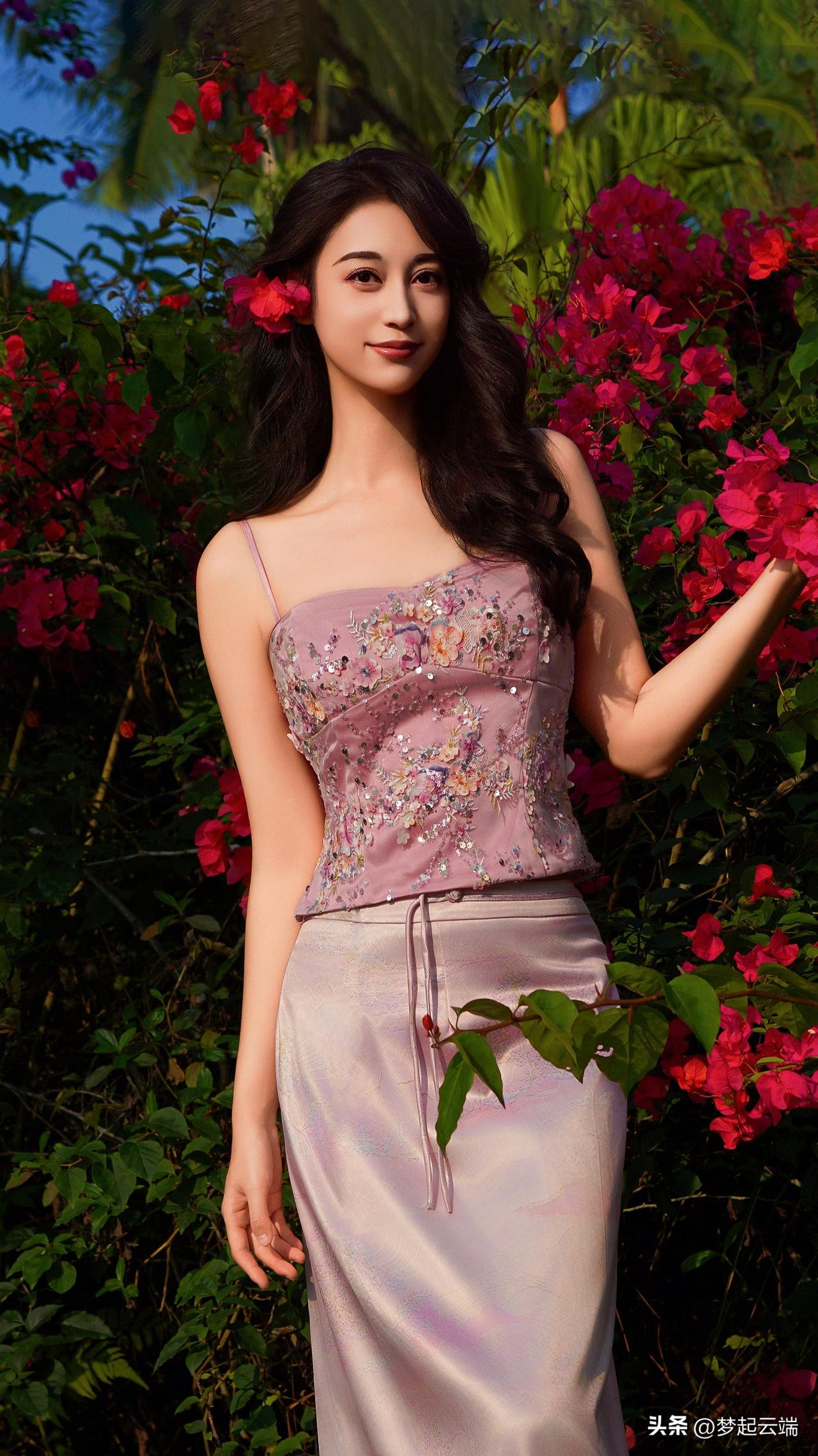 粉嫩少女与花海相映成趣,美得令人窒息!🌸💕