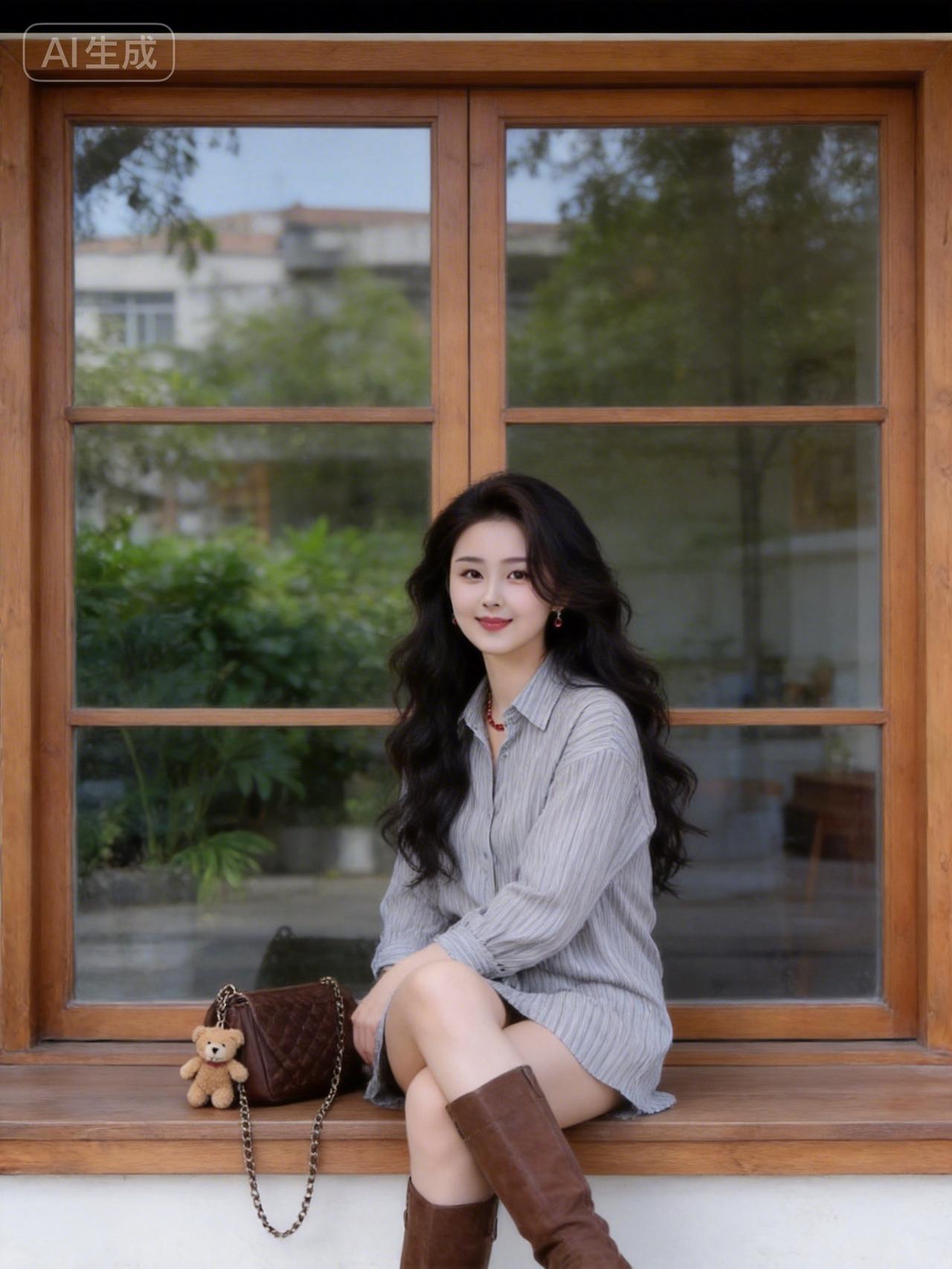 秋日暖阳下的甜美女孩,红衣与落叶相映成趣。🍂💖