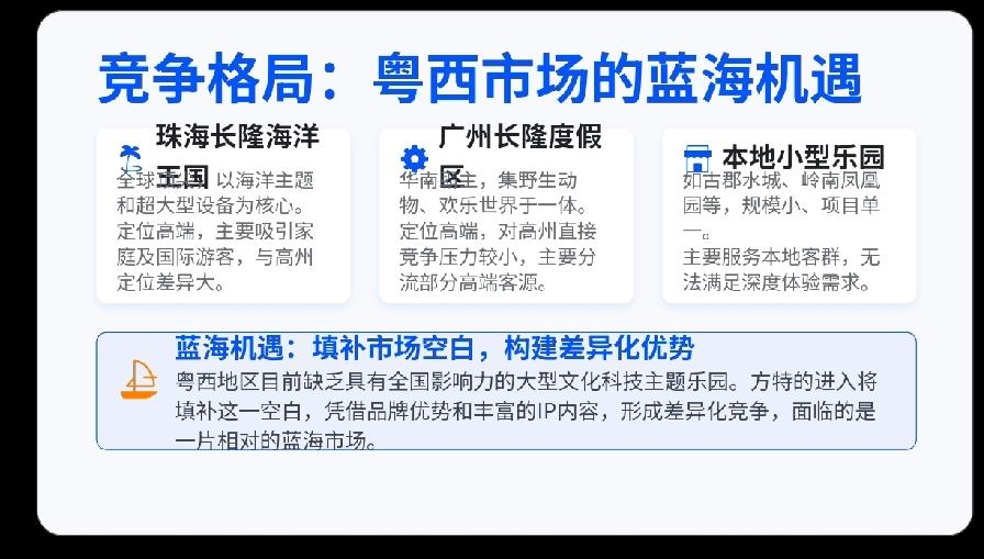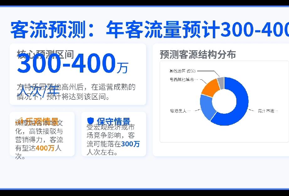 方特乐园真的落地高州,那么人口超2000万的粤西地区,人民又会多一个玩乐的好去处! 高州旅游业近年增长迅猛(2025年游客量同比增长78%),为大型文旅项目提供了坚实的市场基础。 粤西地区目前缺乏同类大型主题乐园,而方特乐园落地高州,将填补粤西人民,没有大型游乐场,而要跑几百公里到珠三角游玩的尴尬局面! 方特乐园的建成,将辐射整个粤西地区,及桂南地区,年客流量将突破300至400万人次!