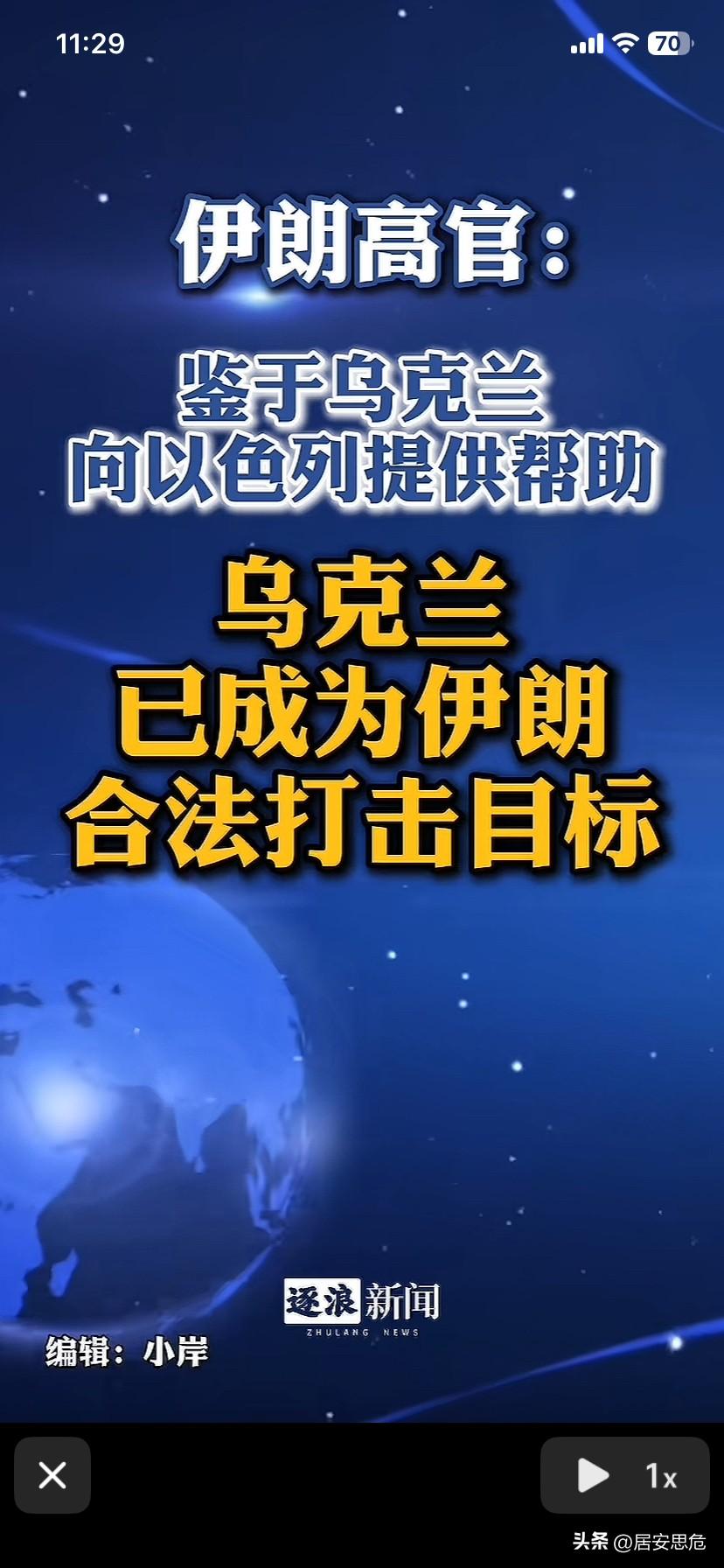 #伊朗高官称乌克兰成合法打击目标#【伊朗高官:乌克兰已成为伊朗合法打击目标】据俄