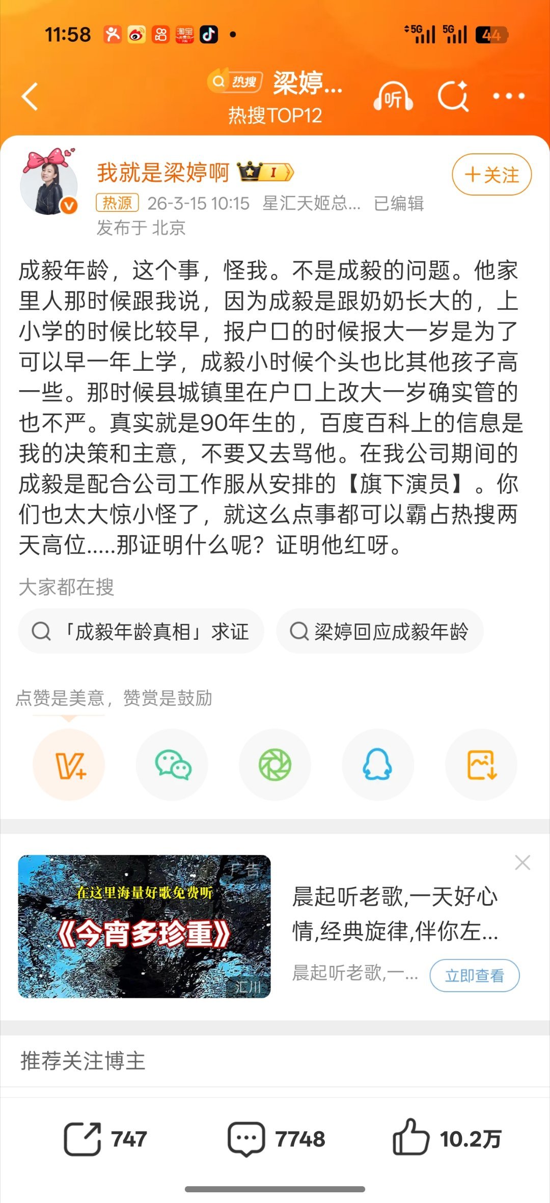 梁婷 成毅报户口的时候报大一岁梁婷回应成毅年龄问题,原来是这样
