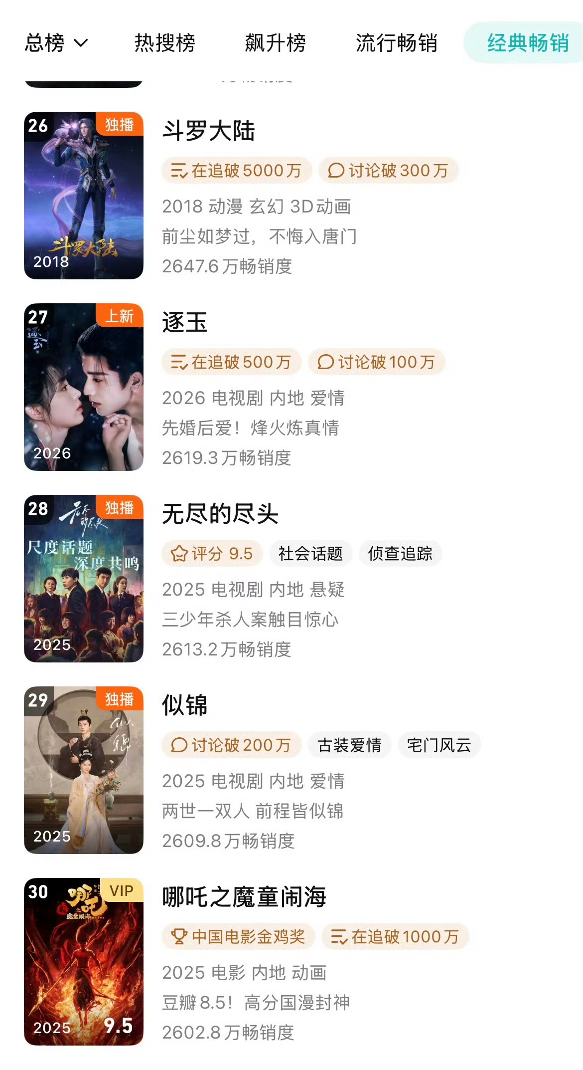 “庆余年4.5小时进年榜前25(因为年榜第二天才更新,细思何其劲爆)33天登顶年榜。”“拳打狂飙脚踢庆余年的大爆剧逐玉多少天了,才进年榜” ——乐子又来了