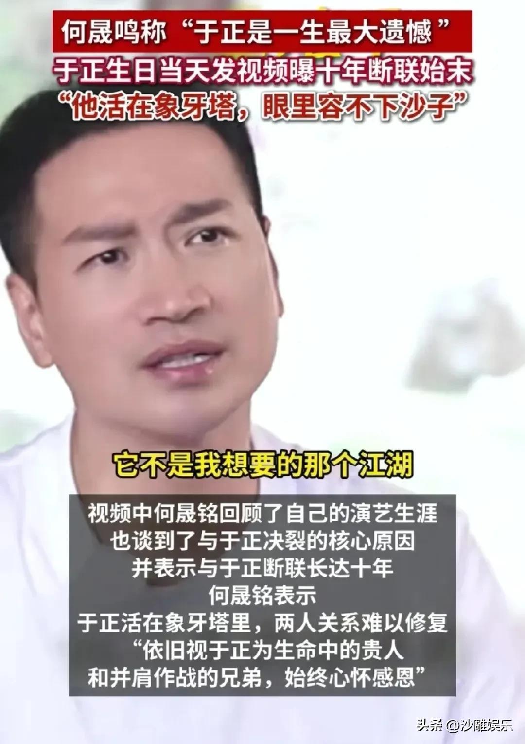 于正何晟铭,闹掰的原因太现实了! 3月15日,何晟铭一则发自拍视频直接引爆了全网考古潮——他不仅详细剖白了和于正当年因为“20万片酬”闹掰的全过程,更是选在于正生日当天,深情喊话:“于正是我这一生最大的遗憾。” 好家伙,这话一出,CP粉直接过年了! 故事还得从那个KTV说起。那时的何晟铭还是“中国力量”单飞后落魄的歌手,于正一句话把他拽进了横店 。两人像亲兄弟一样“拉投资、睡剧组”,联手打造了《美人心计》到《宫锁心珠》的爆款时代 。 但裂痕也随着爆红出现了。何晟铭在视频里透露,演《宫2》时,外面给他开的片酬是一天20万,拍50天就是1000万;而在于正这儿,不管拍两个月还是拍100天,一部戏打包价就20万 。彼时父母渐老,手里没钱,他选择拒演于正量身定做的《笑傲江湖》,出去赚快钱。 这一走,触碰了于正的逆鳞。于正直接删除微信,断联十年。哪怕后来在杭州酒店过道偶遇,两人也仅仅是擦肩而过,视若无物 。何晟铭形容于正:“他活在象牙塔里,眼里容不下一粒沙子。” 1. “白月光”的杀伤力:于正根本不敢直视 何晟铭发视频特意选在2月28日(于正生日),这个小心思真的太戳人了。回顾这些年,于正那张嘴撕遍娱乐圈无敌手,唯独对何晟铭,从来都是闭口不谈、眼神闪躲 。去年闹得沸沸扬扬的“许凯赵晴”事件,许凯一句“何晟铭才是于正的白月光”直接让于正破防到去输液 。再看今年1月,于正暴瘦40斤后,网友发现他戴帽子的模样简直成了“何晟铭2.0” 。网友们辣评:“你离开我以后,我活成了你的模样。”这剧情,于正自己都写不出来! 2. 现实的耳光:20万是报恩,1000万是生活 很多人骂何晟铭忘恩负义。但咱们理性算笔账:2012年前后,何晟铭已经是金鹰视帝,手握爆款。在横店那个流量更迭比翻书还快的地方,他不仅要艺术,更要真金白银给父母养老 。于正给的20万,是“知遇之恩”的亲情价;外面的1000万,是市场对他当下价值的认可。何晟铭说:“宫廷再大也大不过江湖。” 他选择了江湖,于正却觉得他背叛了象牙塔。 遗憾的不是分开,而是没在你最好的年纪懂你 何晟铭说这是“最大的遗憾”,这个遗憾其实很复杂。他遗憾的不是当年选择了赚钱,而是遗憾当年两个人为什么不能坐下来把话说明白。 于正作为老板,或许觉得我给你戏拍、捧红你,你就该永远留在我的“宫”里;何晟铭作为演员,却渴望走出红墙去看看更大的江湖。一个要绝对的忠诚,一个要现实的生存,都没错,错在把职场关系谈成了恋爱。 如今何晟铭主动递出橄榄枝,与其说是“认错”,不如说是人到中年的和解——放过对方,也放过那个曾经在走廊里擦肩而过却不敢相认的自己。 这出戏追了十几年,如果还有续集,我希望是于正硬气地回一句:“知道了,下辈子别选在生日当天刀我。”