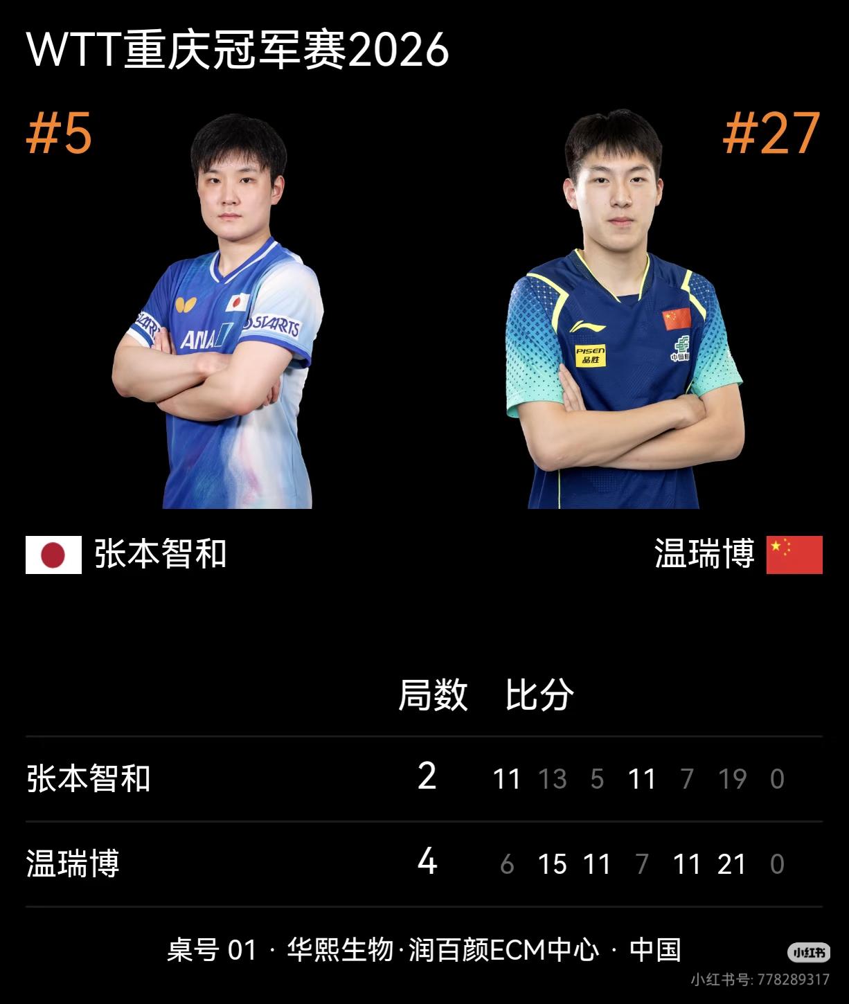 CCTV5+直播,19:30,小将温瑞博VS“眼镜侠”小勒布伦,4-2击败日本张本智和晋级决赛!今晚19:30,2026年WTT重庆冠军赛将展开男子单打冠军战的争夺,对阵双方是中国小将温瑞博与法国“眼镜侠”小勒布伦。届时,CCTV5+直播比赛实况。此前的半决赛,温瑞博以4-2战胜日本选手张本智和晋级决赛,小勒布伦以4-3逆转日本选手松岛辉空晋级决赛。晋级决赛的决赛,期待温瑞博能够再接再厉,一路夺冠!国乒小将温瑞博 王楚钦