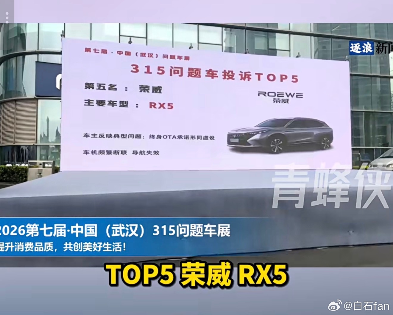 武汉315问题车展问题车投诉Top5是上汽荣威RX5看描述主要集中在车机问题这个车能见度不是很高,竟然还能上榜😲有没有车主,来说说是这样的吗?