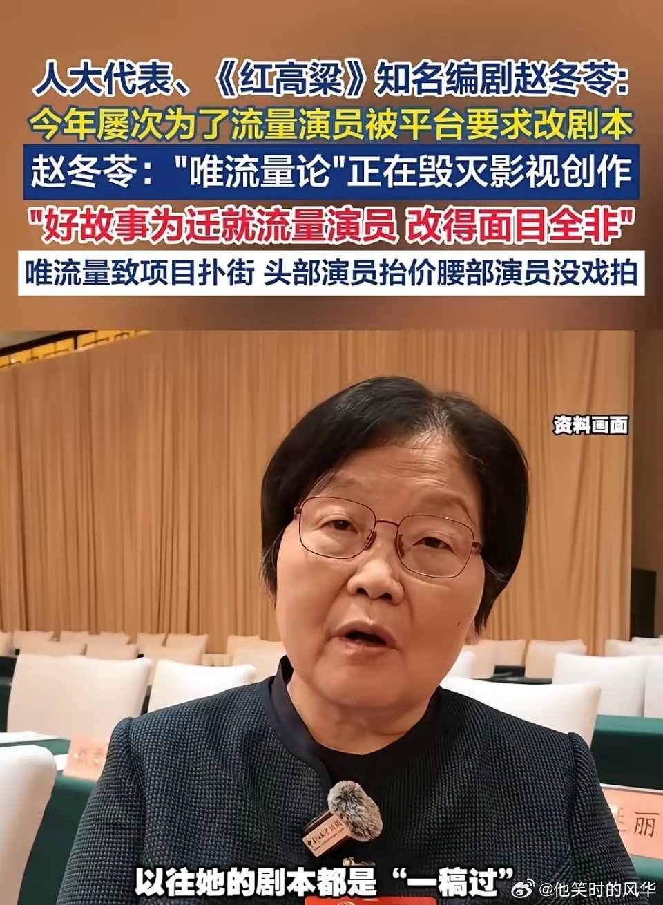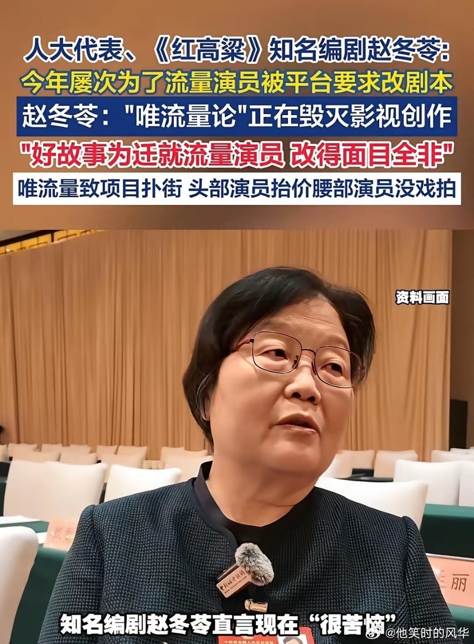 终于知道中国电视剧的质量为啥越来越差了曾担任过《红高粱》《警察荣誉》《幸福到万家》《北上》等著名编剧“赵冬苓”曾坦言说:“唯流量论”正在毁灭影视创作,很多好故事好题材为了迁就“流量明星”就被平台要求修改剧本,结果把原本的好故事改的面目全非,到最后播出的效果并不好。以前都是按角色挑选适合的演员,而现在变成了直接为“流量明星”写剧本,再这样下去,中国影视行业真是没有未来可言。如今娱乐圈的现状:演技好的演员无戏可拍,而那些所谓的“流量明星”不仅资源接到手软就连身价也是“水涨船高”,现在整个影视行业都跟着流量在跑偏,照这样下去,电影电视剧的质量怎么可能会好?
