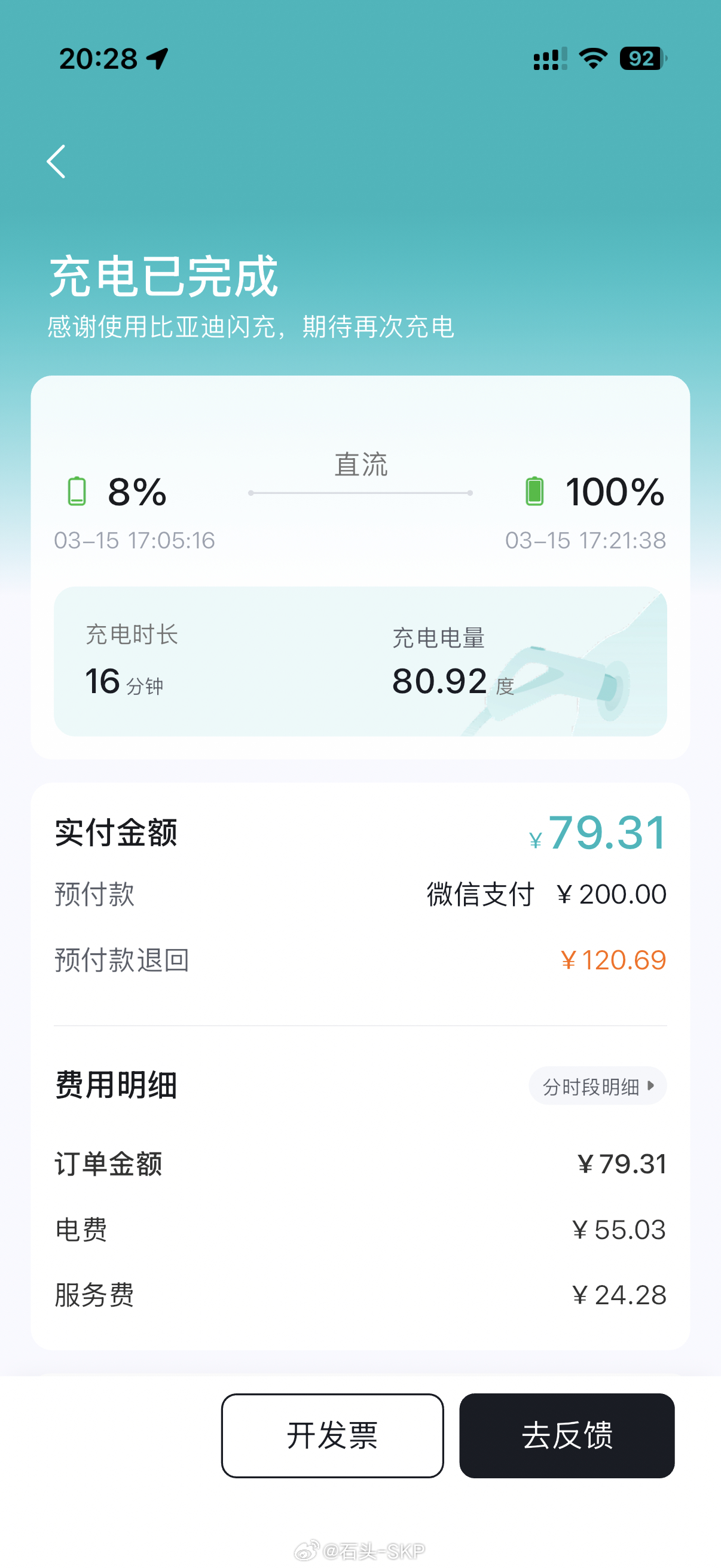 而且我算了一下充电损耗,app显示充电80.92度,实际充到车内(100%-8%)*83.21=76.55度