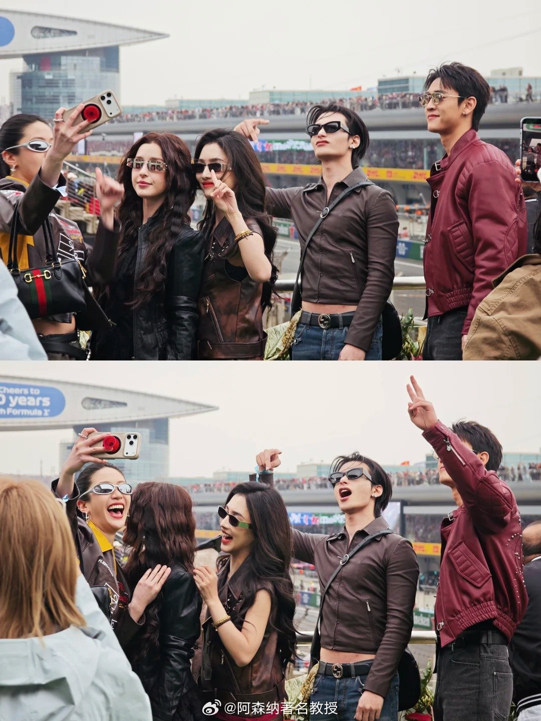 F1中国大奖赛 赵昭仪、哈尼克孜、王天辰都来看F1了,赵昭仪好漂亮又高又飒
