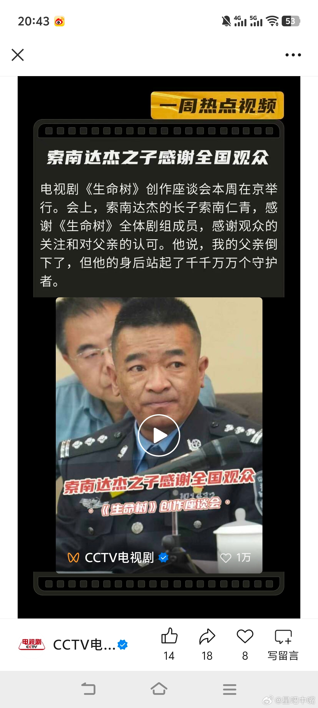 2️⃣一周热点视频:《生命树》索南达杰之子感谢全国观众!