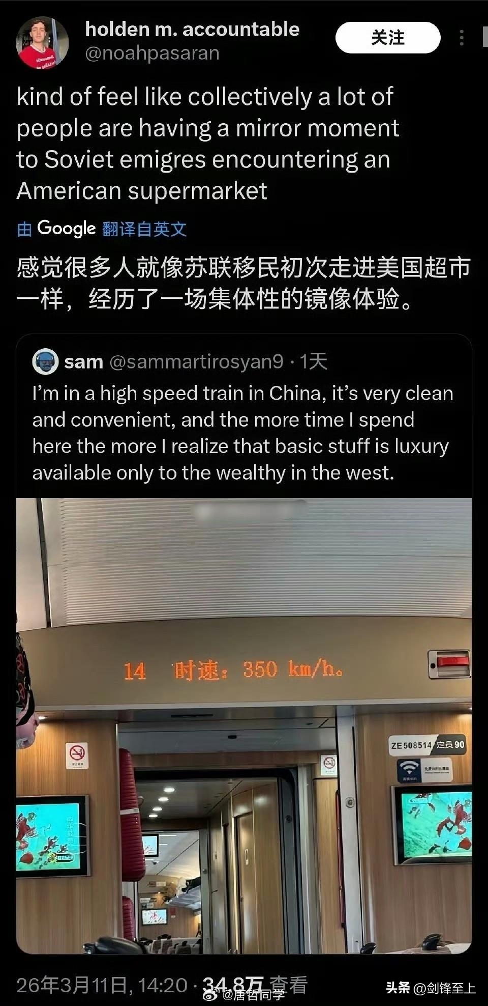 准确的说 现在的美国人来中国,落差感之大就像80年代的中国人去美国