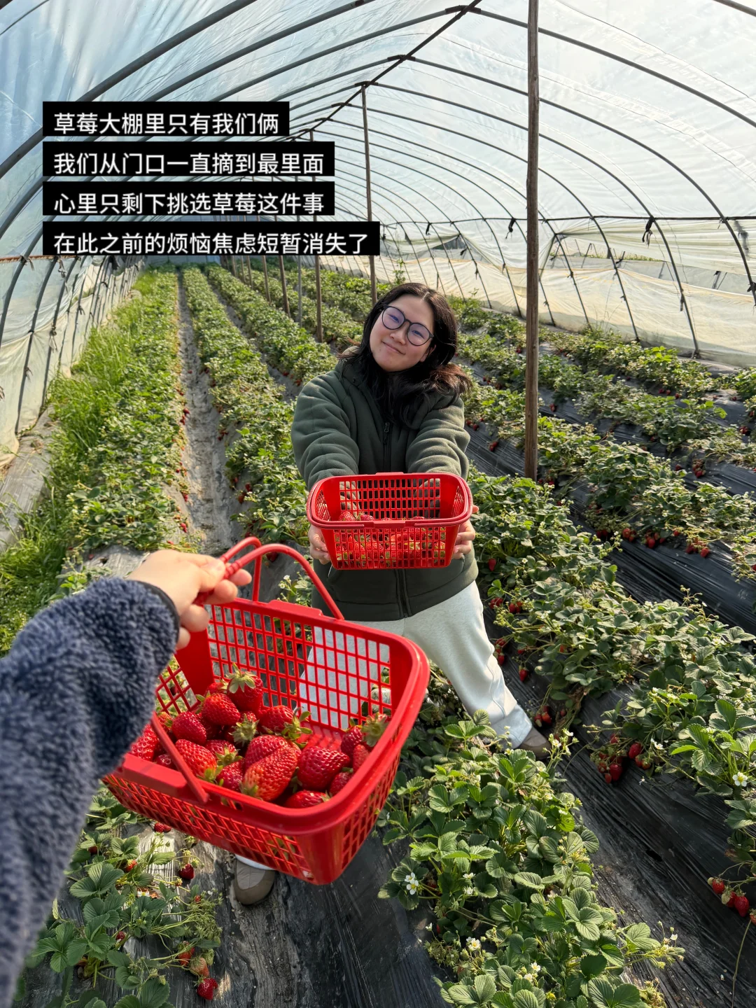 在此之前,我的情绪一直很低落,对未来感觉很焦虑迷茫,摘草莓的时候全身心投入到挑选又大又红的草莓,忘却了焦虑的事。