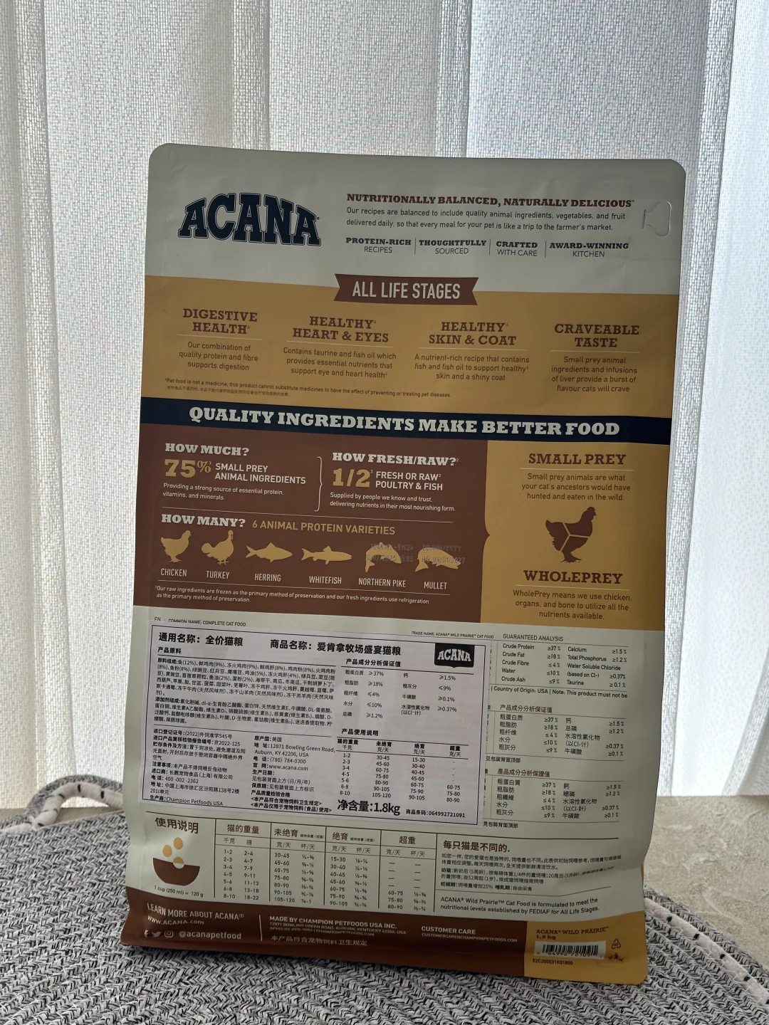 讲真的为了它能长肉,老母亲煞费苦心,买了不少那些说能长肉发腮的罐头,还有生骨肉也吃了不少,结果这小猫一斤都不带长,都那么久了还是个尖脸蛋!!后面被一个一直关注的博主安利了爱肯拿,这也是40多年的老牌子了,看了下它的整体配方还是比较营养均衡的,就买来试了一下..没想到,我家的猫对于这个猫粮是真的爱啊,kuku炫嘴里..坚持吃了一个月没想到还真胖了1斤多..而且是属于长肌肉,不会虚胖的那种!!现在我家小猫看着体质就老健康了