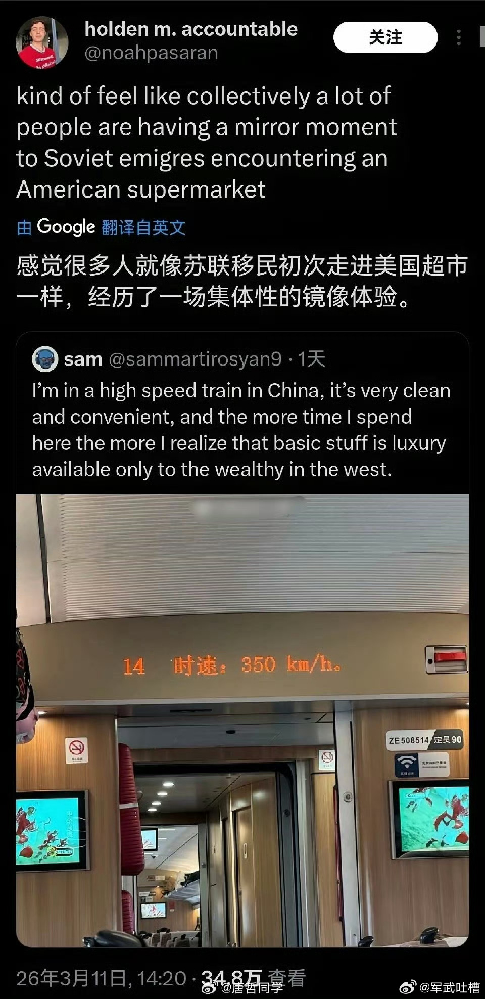 准确的说现在的美国人来中国,落差感之大就像80年代的中国人去美国