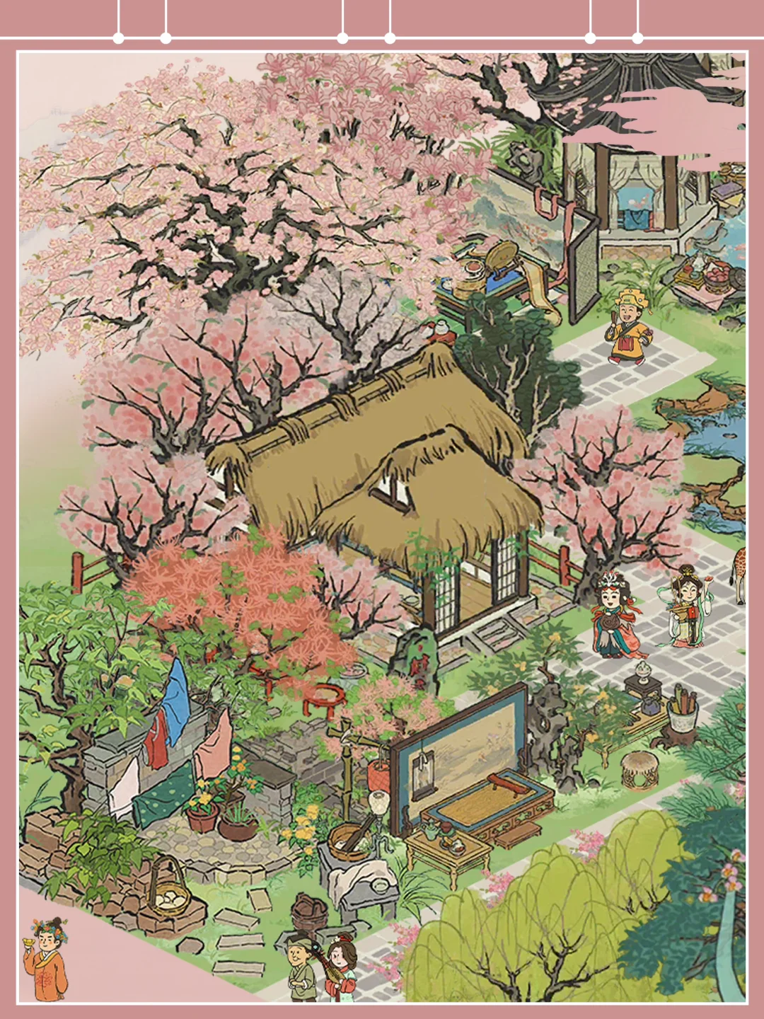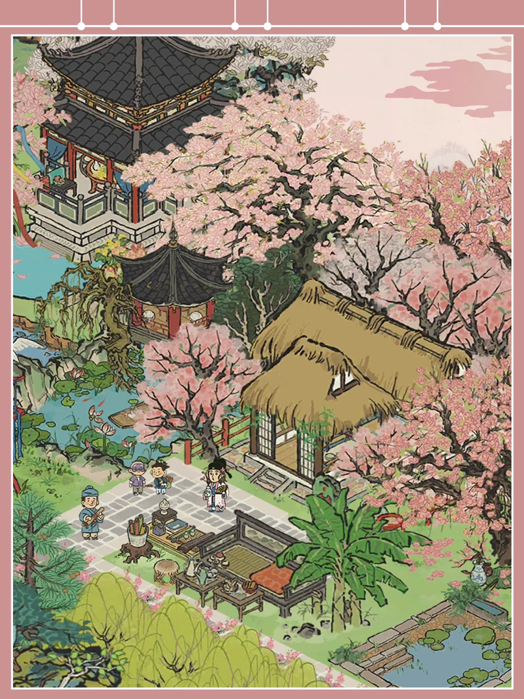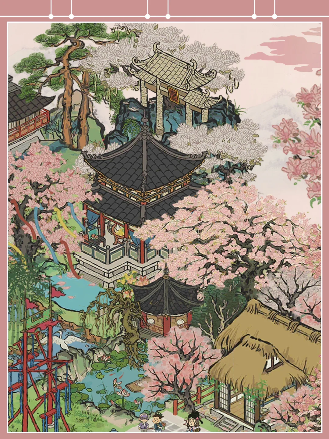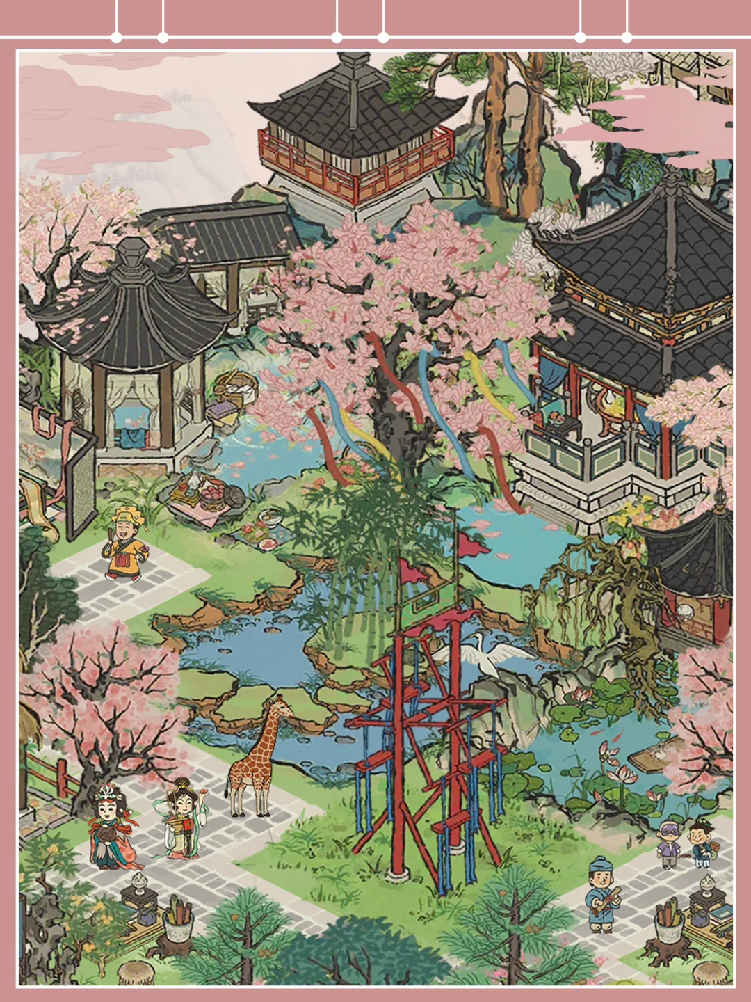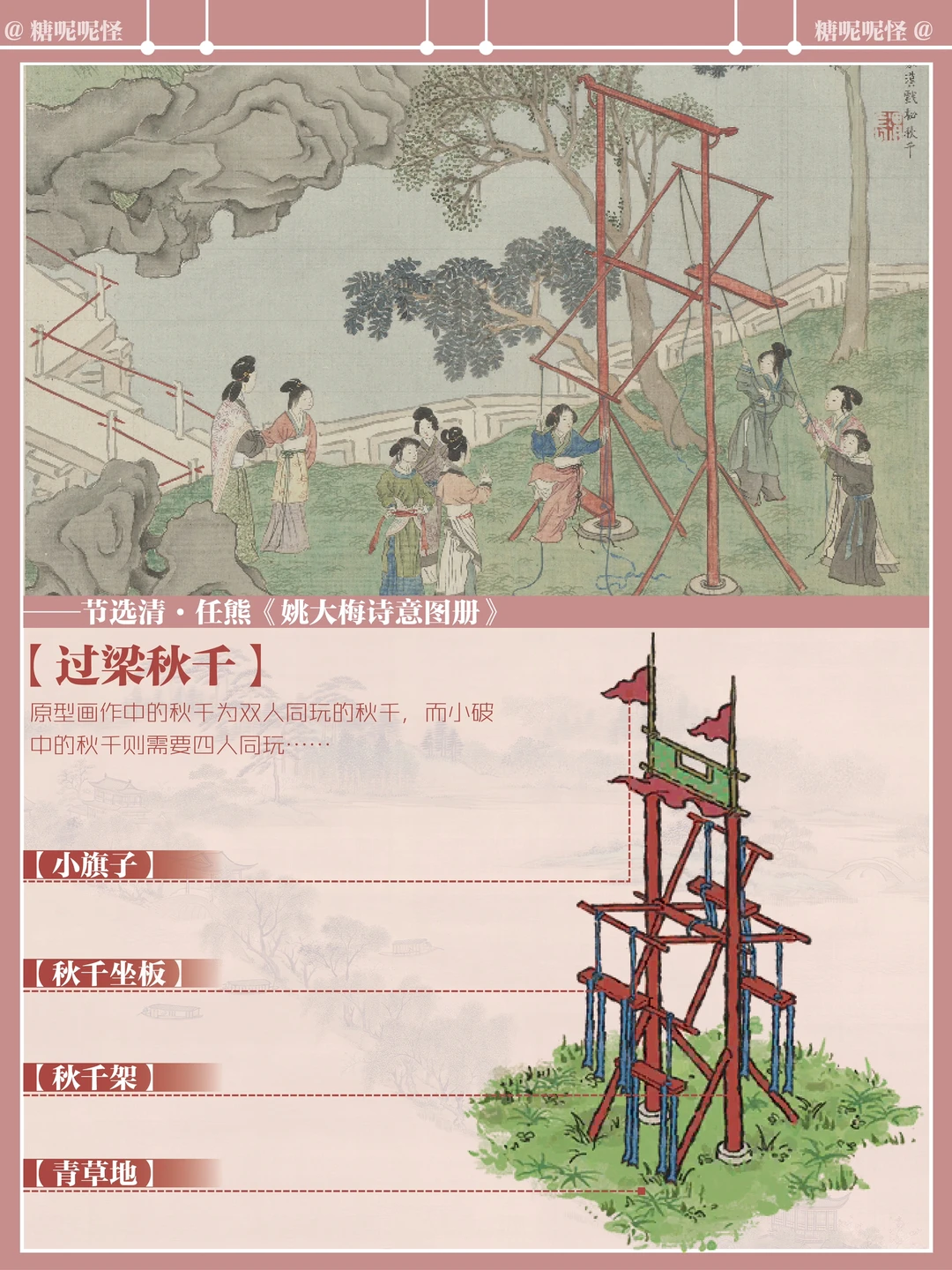 小破图【过梁秋千】的原型大部分来源于清代任熊的《姚大梅诗意图册》的荡秋千的画作。