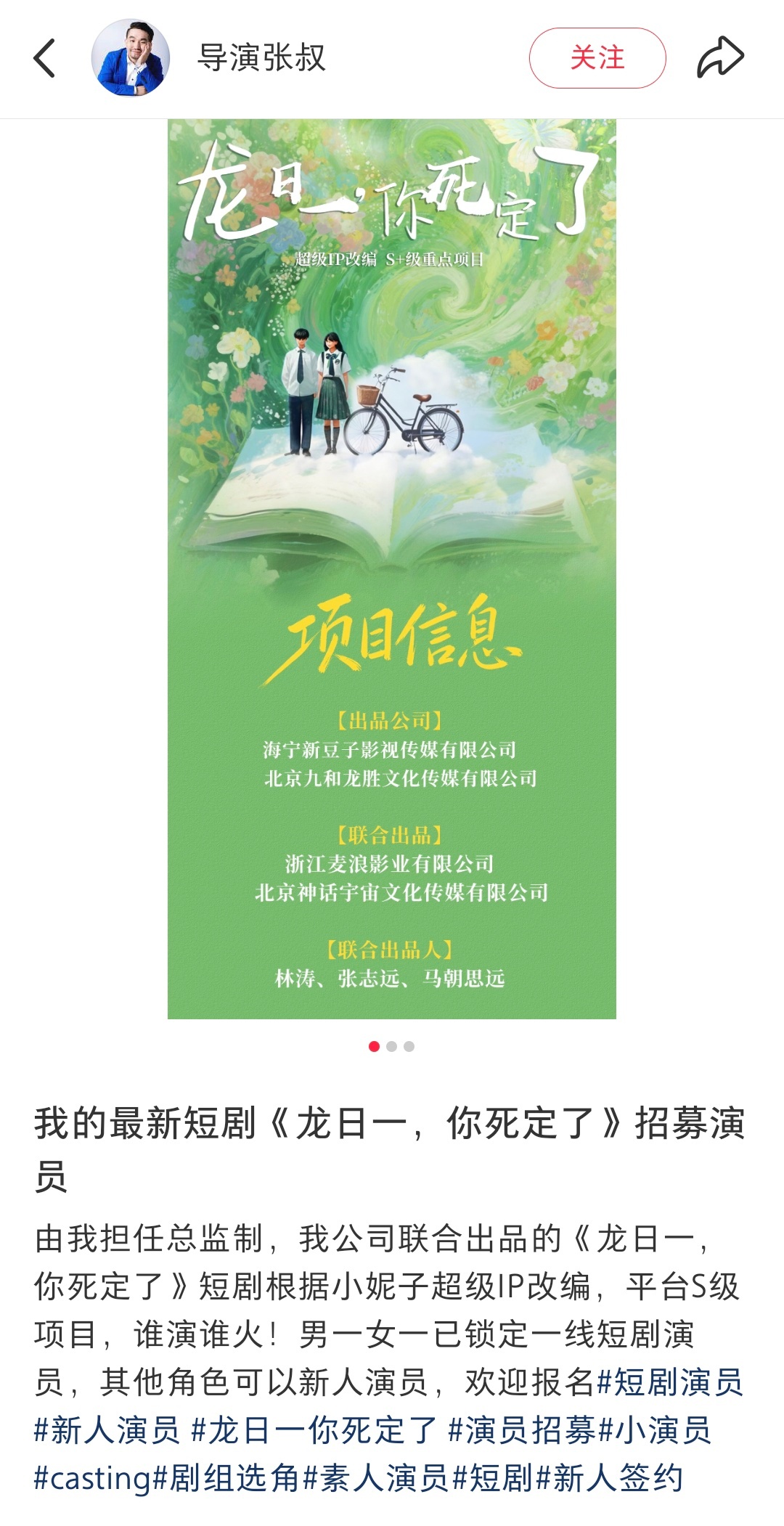 短国要翻拍《龙日一,你死定了》男一女一已锁定一线短剧演员我真的很好奇短国头部谁来演龙日一我的古早网剧当时龙日一真的迷死我了