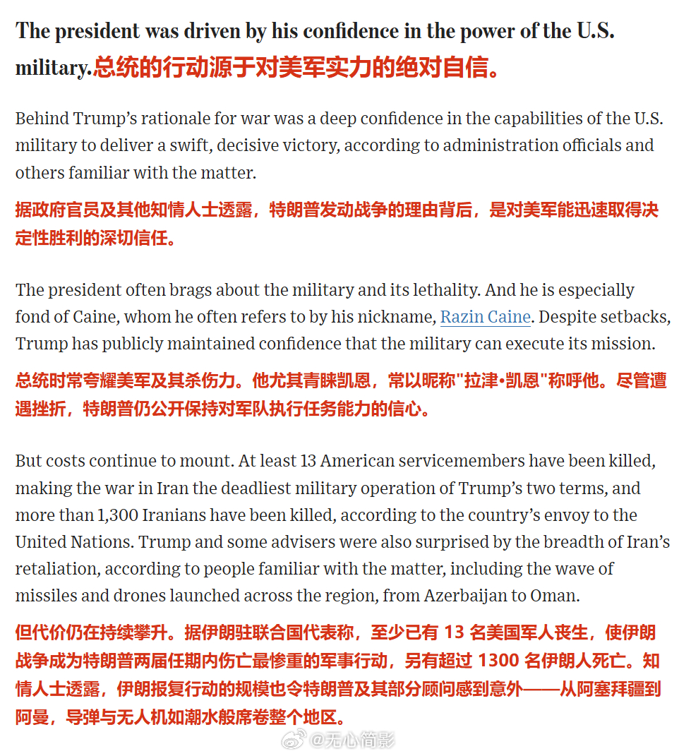 🔴特朗普对美军的实力极度信任,认为美军能迅速对伊朗“取得决定性胜利”,即便到现在什么目标都没完成,美军还噶了13个,他依然对美军保持信心——但特朗普和顾问也对伊朗的报复规模感到“意外”。