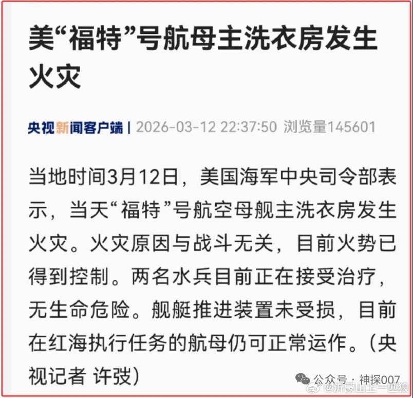 美国的福特号航母,真的是命运多舛。赶到战场之前是便秘(厕所系统大堵塞),赶到战场之后是急火攻心,以至于洗衣房的自来水着火了。