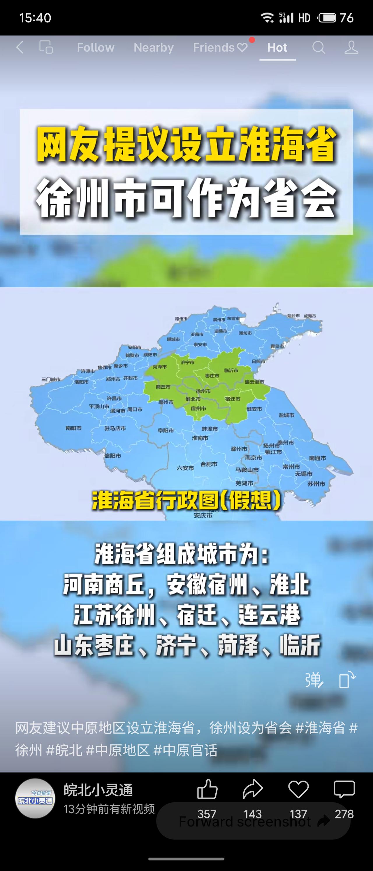 春日生活打卡季网友提议设立淮海省,由皖北、豫东、鲁南、苏北部分城市组成,徐州为省会。此设想在短视频平台引发热议。