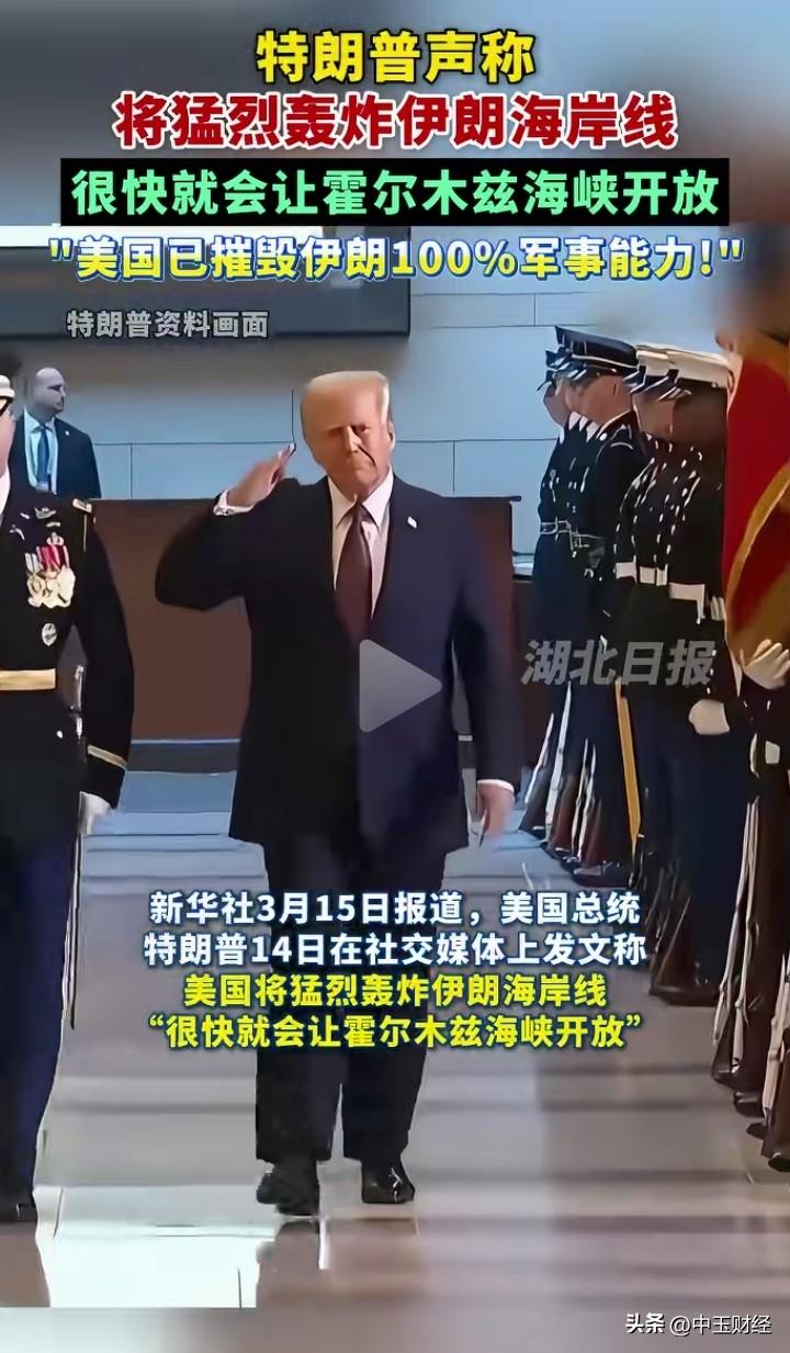 胡萝卜加大棒,这牛皮吹得可真响啊!之前还想当和平使者,结果被以色列拖下了水,战争打响后便骑虎难下。一会儿宣称敌人100%被摧毁,一会儿又说要确保霍尔木兹海峡通航并夺取控制权,简直就是全世界最大的“大喇叭”!