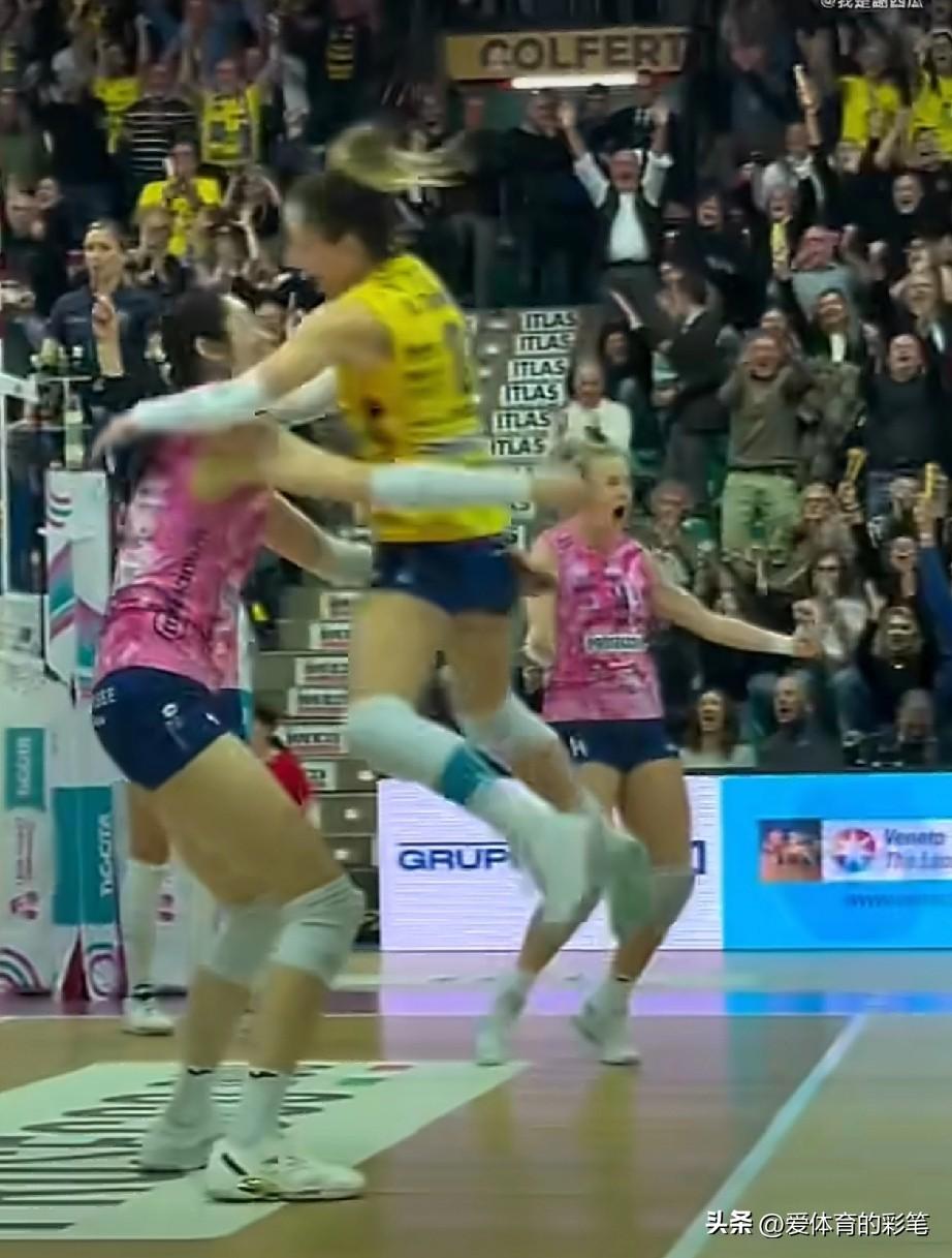 德吉纳罗跳起来,疯一般冲向朱婷,这一幕让人感动得快哭了[笑哭],半决赛第四局25:24时,朱婷拦死核心人托洛克的重扣,这关键拦网,不服不行;这还不够,第五局14:12时,面对高拦网,朱婷毫不手软,一个钉地板将球扣死,这关键扣球还得靠朱婷。全场朱婷32扣17中3拦1发,带领全队逆转诺瓦拉,荣获MVP,朱婷关键人物的关键分含金量十足啊。意甲女排总决赛 朱婷海报 朱婷欧冠捧杯 朱婷双圈大满贯