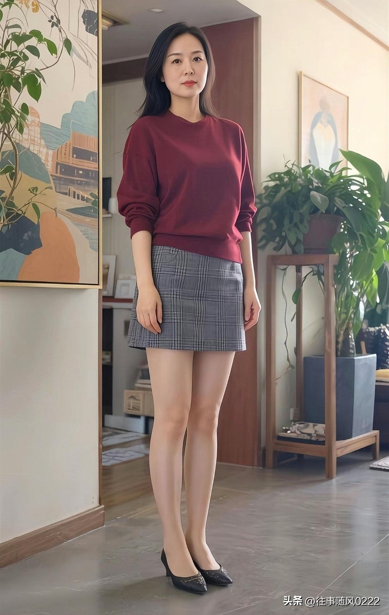 简约穿搭,红衣配格裙,优雅气质,尽显时尚