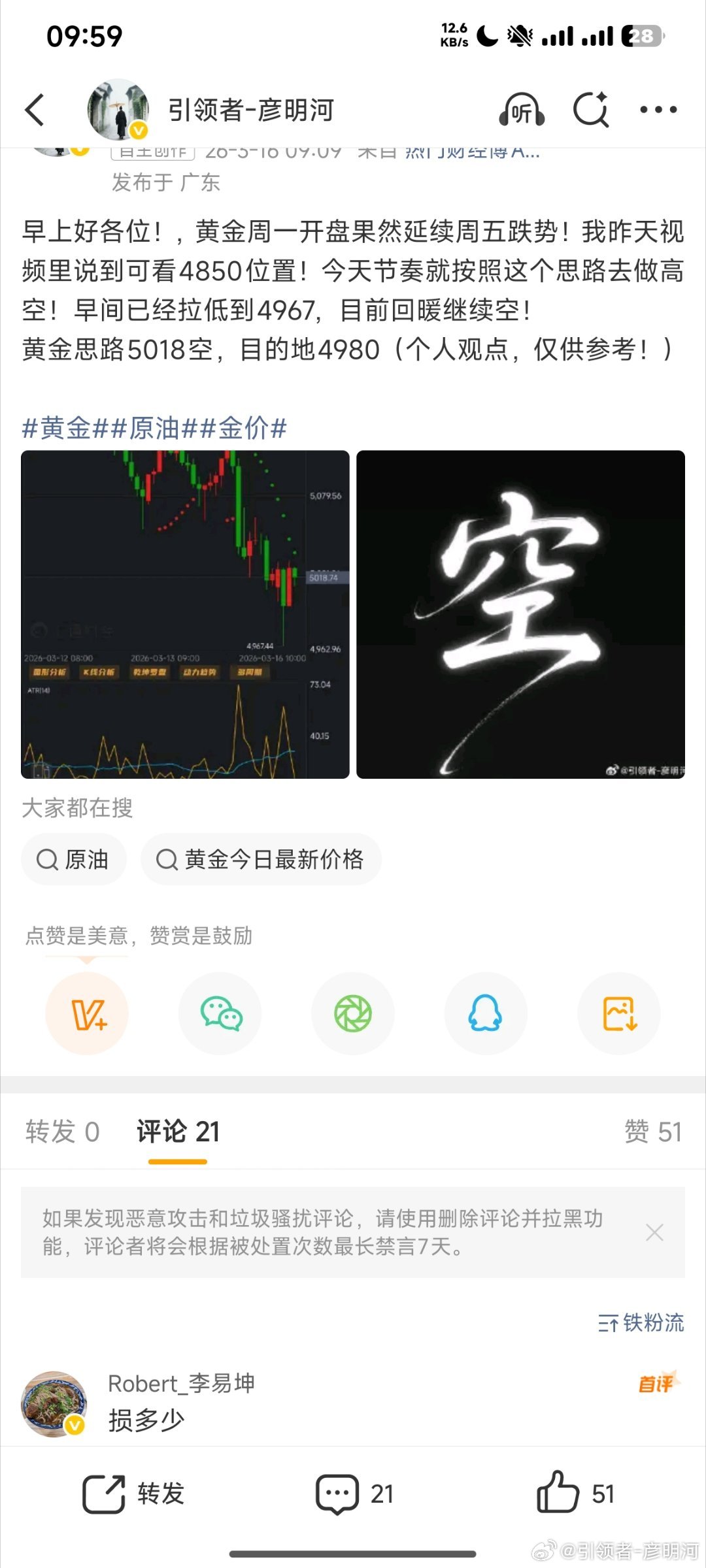 留言太多一时间实在是回复不过来,明确说黄金节奏上的把控!另外给到的5018空,在4988提示减已有30美刀!周一的大礼包开门红送给大家!打铁还需自身硬!各位不要着急,如果实在想得到第一时间的信息那就与我合作吧!