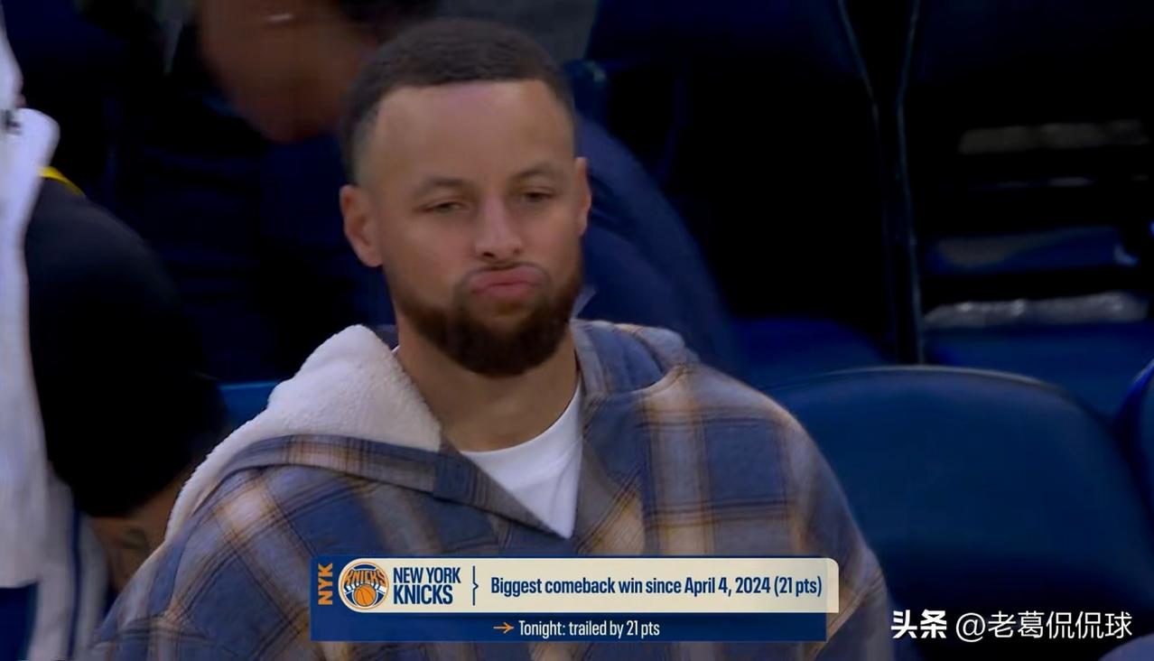 勇士超级球星库里终于笑不出声了!在今天勇士客场以107:110惜败于尼克斯的赛后,转播镜头长时间的给到了此役因伤缺阵的库里,只见库里撅着嘴看起来非常的失落,他的脸上完全没有了之前的笑意。值得一提的是,本场比赛库里在绝大部分的时间里都非常的开心,他在场下一直兴高采烈的看球,然而当球队输球之后,库里再也笑不出声了。