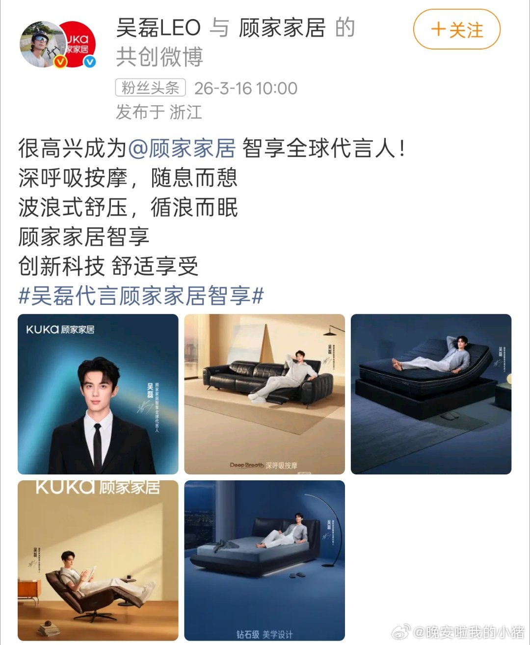 吴磊顾家家居智享全球代言人官宣