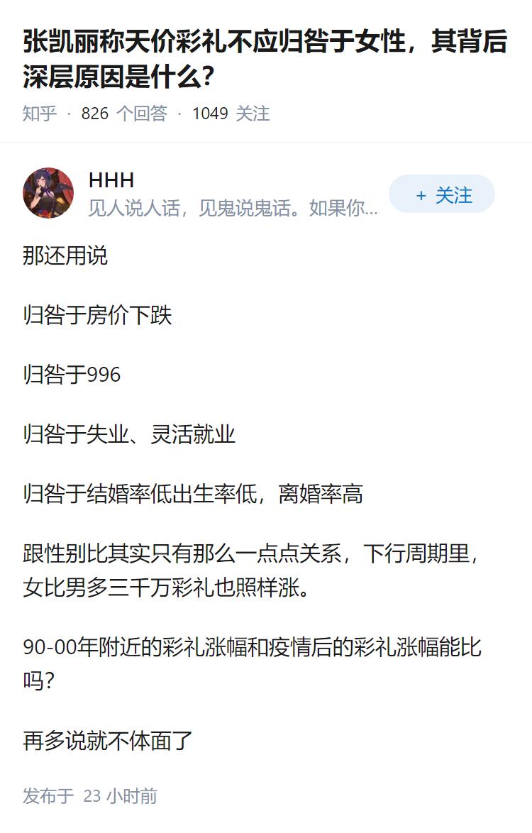 张凯丽称天价彩礼不应归咎于女性,其背后深层原因是什么?