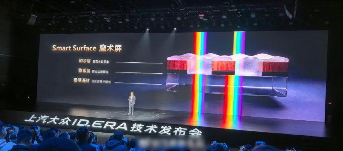 讲心里话,一开始看到Smart Surface魔术屏上车ID.ERA 9X时,我心里是有点打鼓的,一是画面的显示细腻程度,二是虚拟按键的控制准确性,但实际体验下来,整体表现是超出预期的! 这个时候它的优势就很明显了:一是提升座舱设计的质感,二是在不用的时候降低车内屏幕的光污染,第三点是我在青藏高原长途驾驶的时候发现的,外后视镜夜间反光也小了很多! 上汽大众ID.ERA技术发布会