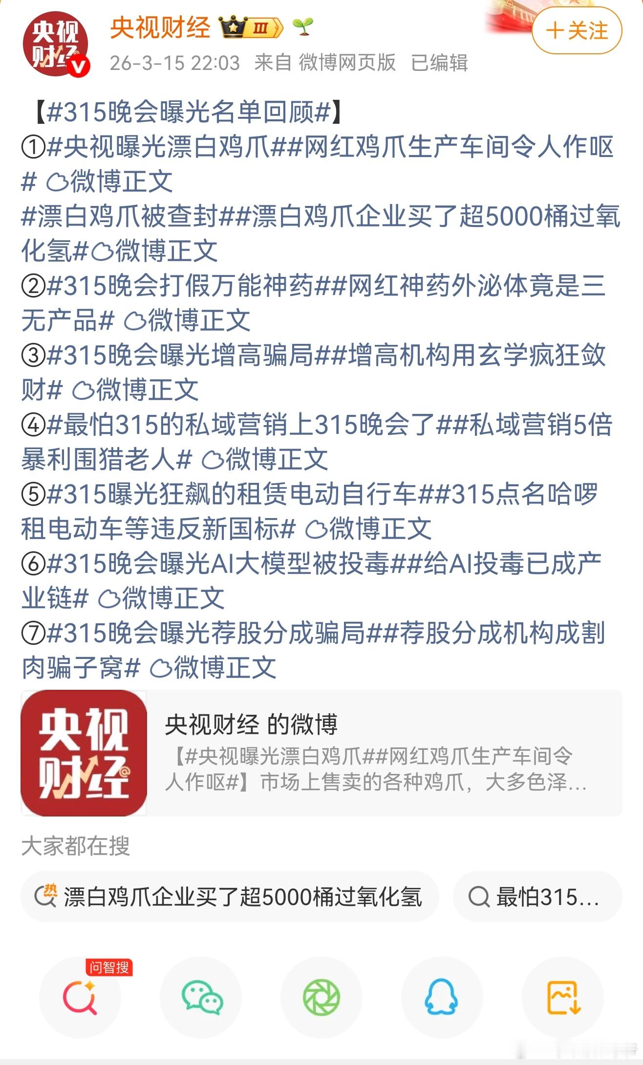 315晚会曝光名单回顾看了下,没有手机和车企,看来大家做的都不错