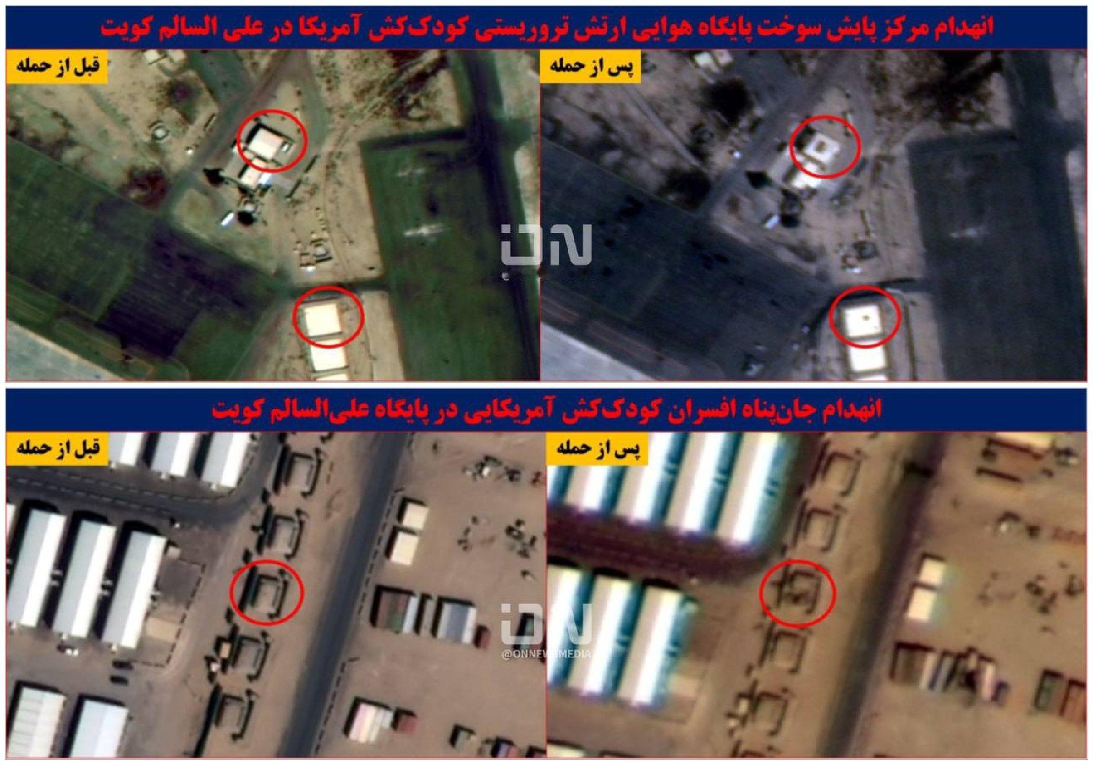 🔻法尔斯通讯社再次发布神秘卫图:🔻图1-2:伊拉克哈里尔基地内美军军官住所遭袭,直升机维修机库被毁🔻图3:阿里·萨利姆基地内美军军官掩体及燃料监控中心被摧毁🔻图4:苏丹亲王基地作战指挥中心被摧毁伊朗称440公斤60%丰度浓缩铀被埋内塔尼亚胡发视频自证在世海外新鲜事中东现场直击