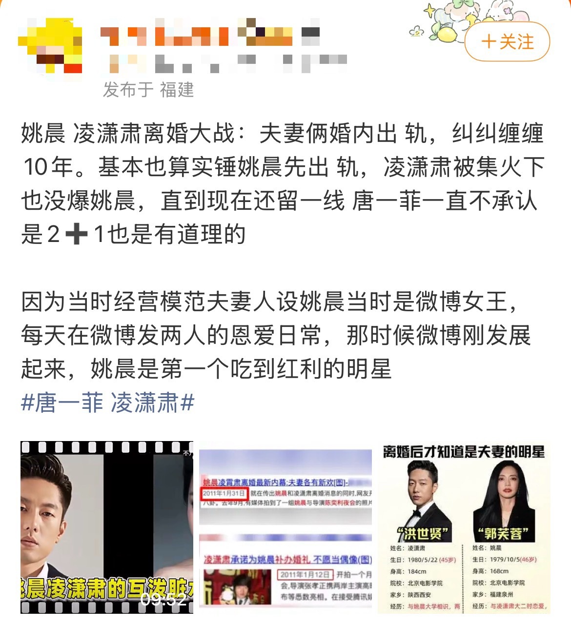 姚晨凌潇肃居然纠缠了10年 有网友考古姚晨凌潇肃的故事,发现俩人从校服走到婚纱走到分手,分分合合纠缠了有10年!导致说到俩人时,一部分人以为姚晨分了之后再没结婚,一部分都不知道他俩在一起过不过分开了,就各自安好吧