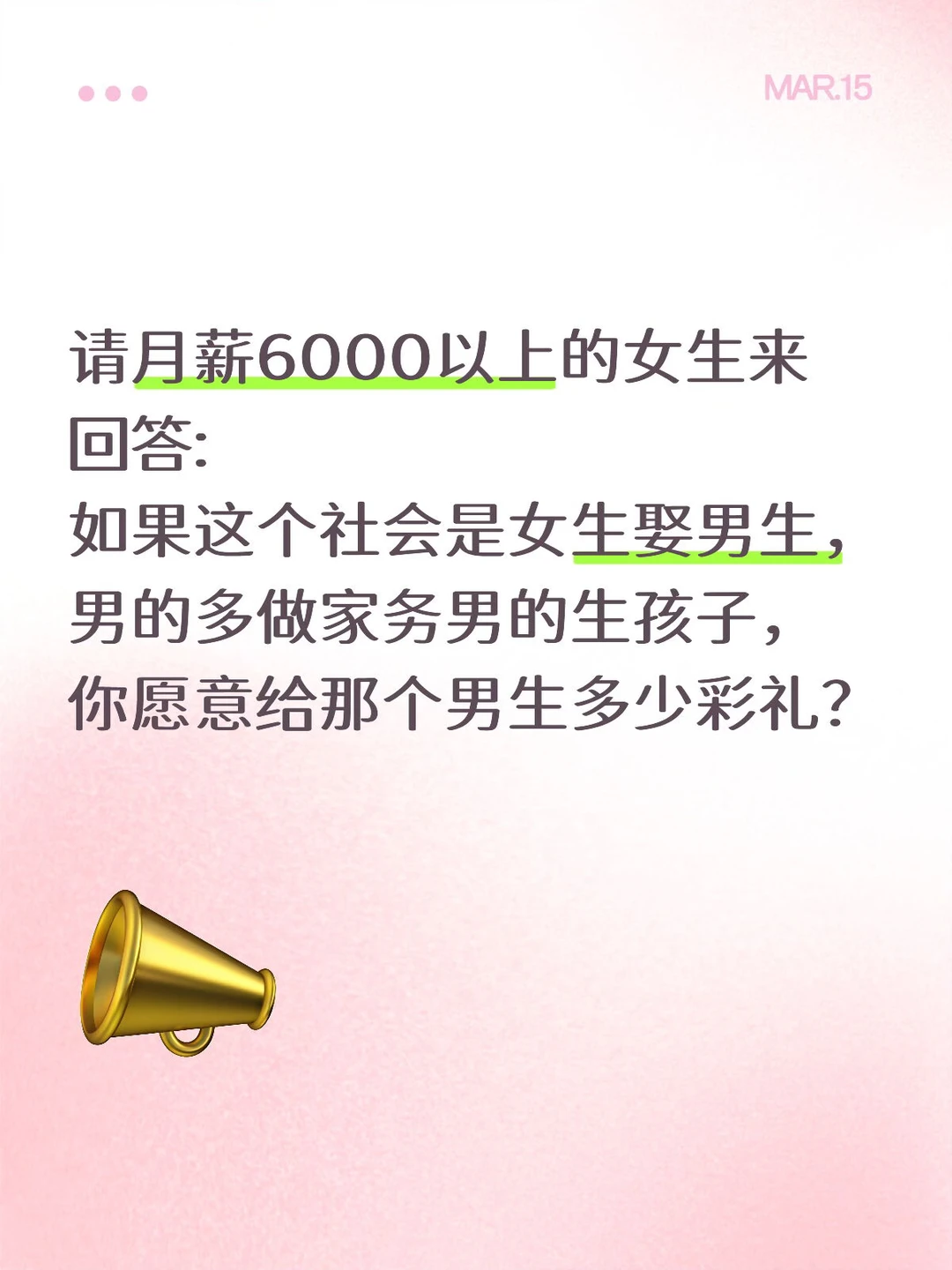 就是男女的身份,完全反过来,女生会给男生多少彩礼??