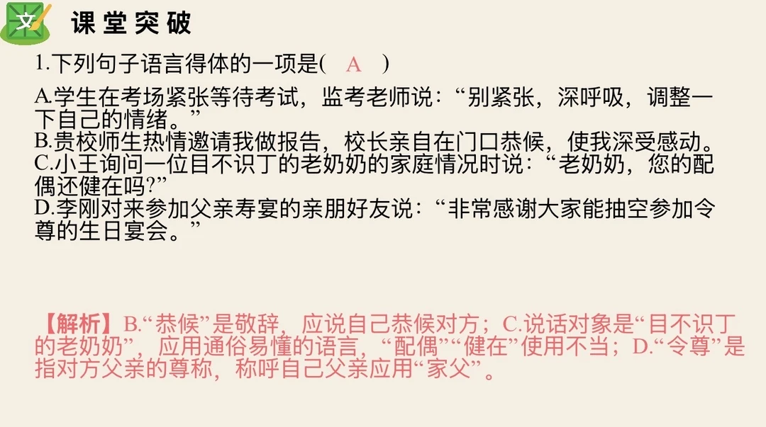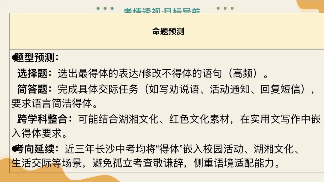 作为新时代学生,用语得体是基本要求,所以全国各地基本会在选择题或者综合性学习里面进行考查。
