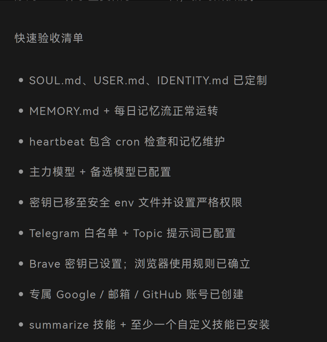 用OpenClaw之前,先看这篇优化设置指南(安装后完整检查清单)网页链接AI 独立开发者、X 博主 Moritz Kremb 把自己踩过的这些坑,整理成了一份「装好龙虾之后要做的第一件事」。只需一次 30~60 分钟的加固操作,就能把刚装好的OpenClaw,变成真正扛得住日常使用的系统。How I AI