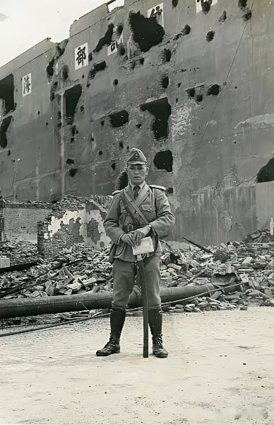 这个日本鬼子在攻占上海之后留下了这张照片,看看这张照片的背景,墙壁上全是炮弹打过的痕迹,看到这张老照片,不由得想起当年我们遭受的苦难,这张照片就真实再现了当时的情景,现在生活在和平时代的我们,永远不要忘记我们曾经遭受的苦难历史,永远不要忘记日本鬼子在我们这里犯下的滔天罪行!