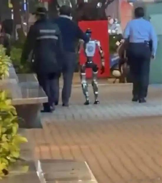 涉事机器人高举双手被警方押走这也太扯了一点吧,要押不也是押操纵机器人的人吗?把机器人抓走,难道是要把机器人关两年再放出来?