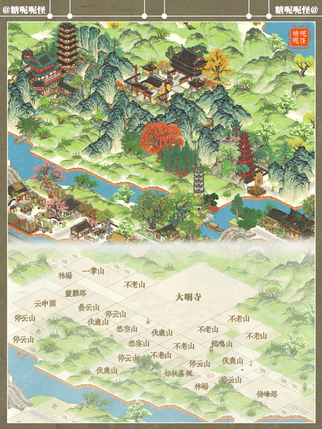 🤍扬州府郁林边+大明寺+暖池边+解鞍边大明寺布局 🤍建筑:云中阁|灵麒塔|倚峰塔|不老山|停云山|伏鹿山|愁空山|落枫知秋