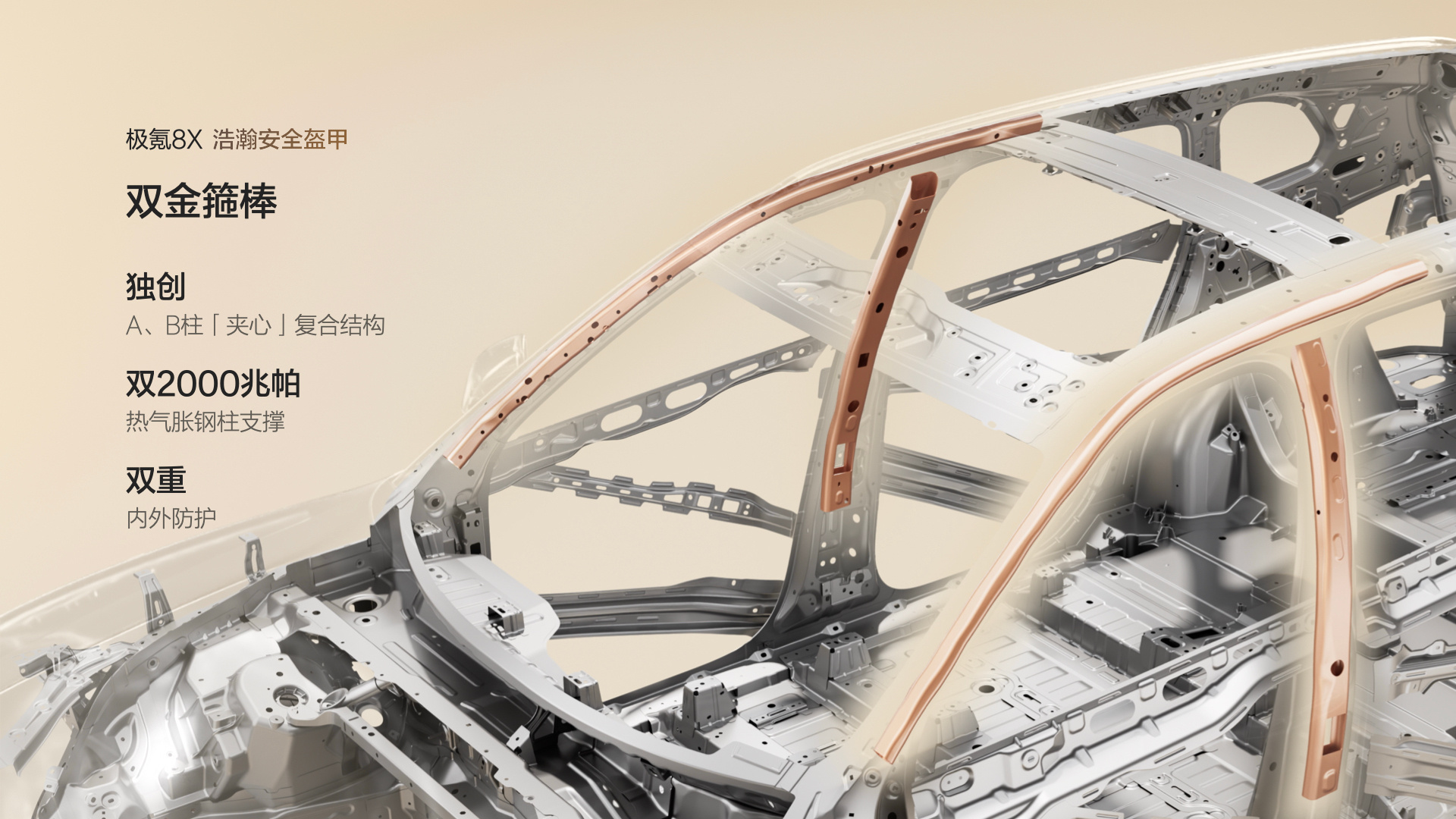 极氪的安全基本不用担心。浩瀚安全盔甲车身,还有首发的双门环 + 双金箍棒设计,电池也是 985 防护体系,从体型上也更像 “混动公路坦氪”。
