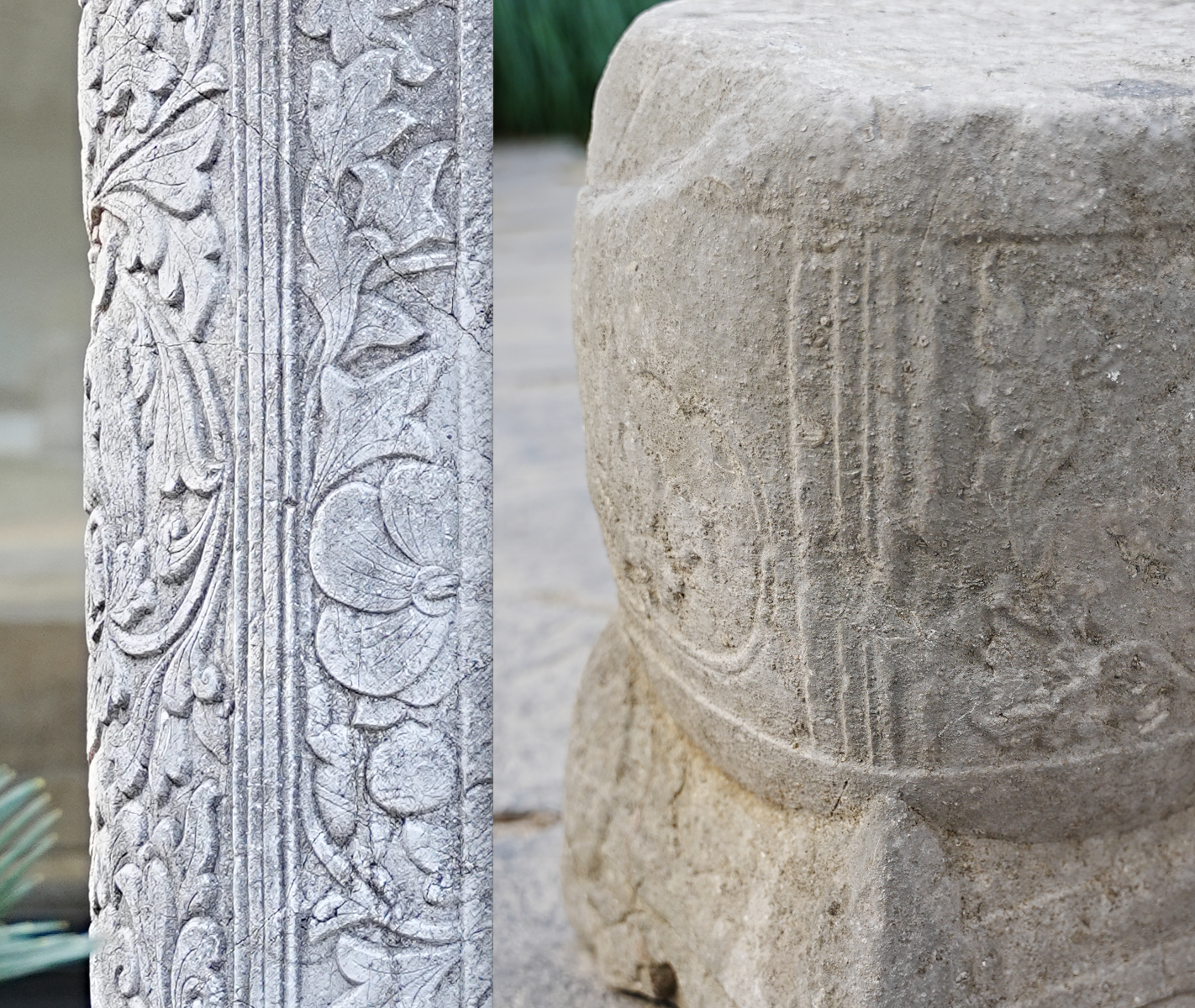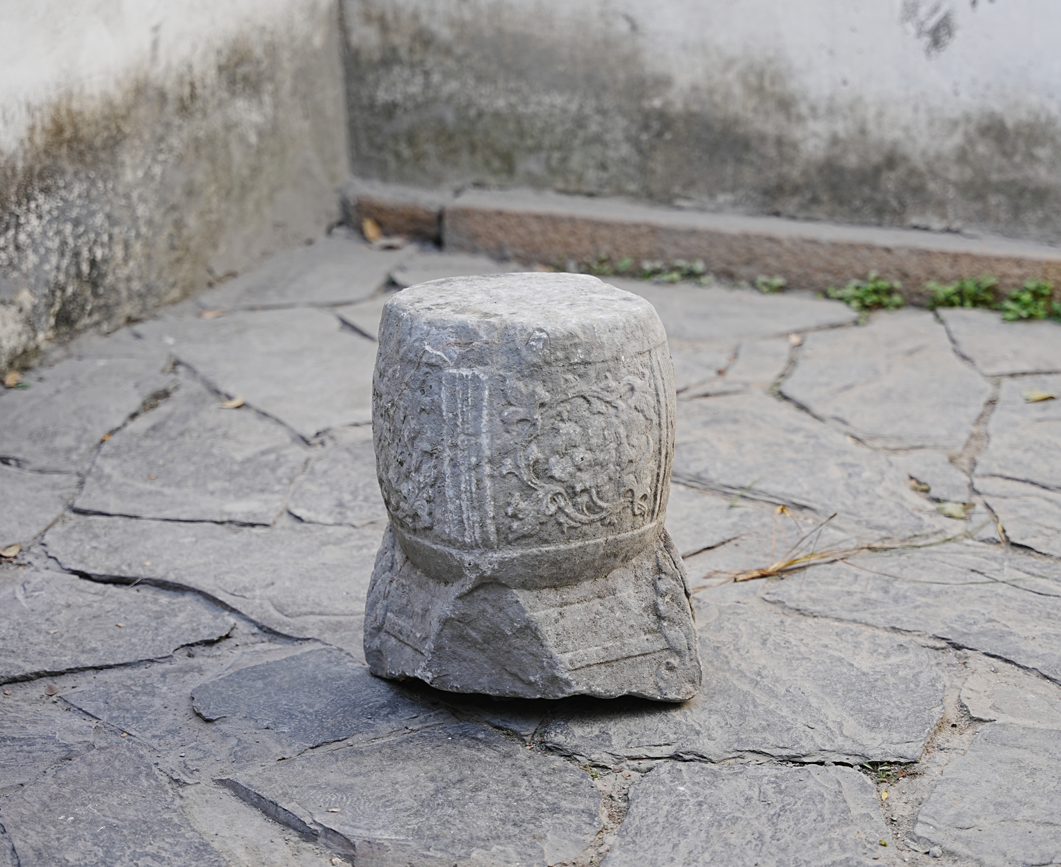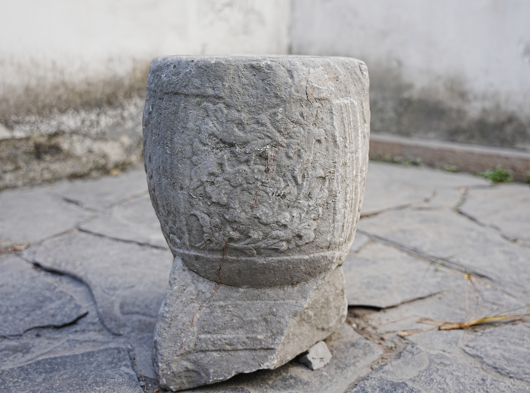 仍在给人坐的宋元石家具?苏州怡园入口附近的美麗鼓形石凳,造型为一鼓+一仿木座,鼓分四面,三面刻牡丹等纹饰,一面刻壶门,鼓座用羽毛形腿足,横枨相连。鼓凳整体造型华丽精细,或有宋元之物的可能,类似鼓凳在言子故居、苏州畅园乃至西塘等处都有,花纹形式、年代各有差。但个人认为最美,年代尚早的还是怡园这一处。 配图有些对比对象的是拿的罗汉院石柱作对比。