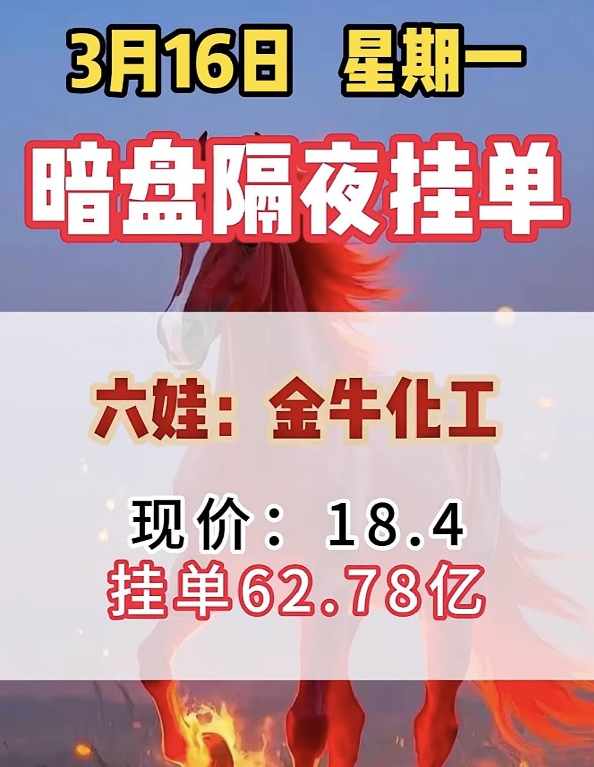 3月17日暗盘隔夜挂单个股揭晓 3月16日暗盘隔夜挂单情况超有意思!金牛化工现价18.4,挂单竟达62.78亿。之前它现价16.94元时,买单就有95.84亿,卖单39.69亿。化工行业近期整体复苏,市场需求回暖,金牛化工作为化工原料生产销售企业,产品有一定市场份额,业绩有望改善,这或许就是资金大量买入的原因。再看看其他个股,像岩山科技、金风科技等也都有资金关注。暗盘隔夜挂单数据里藏着不少市场信号,值得好好研究琢磨。