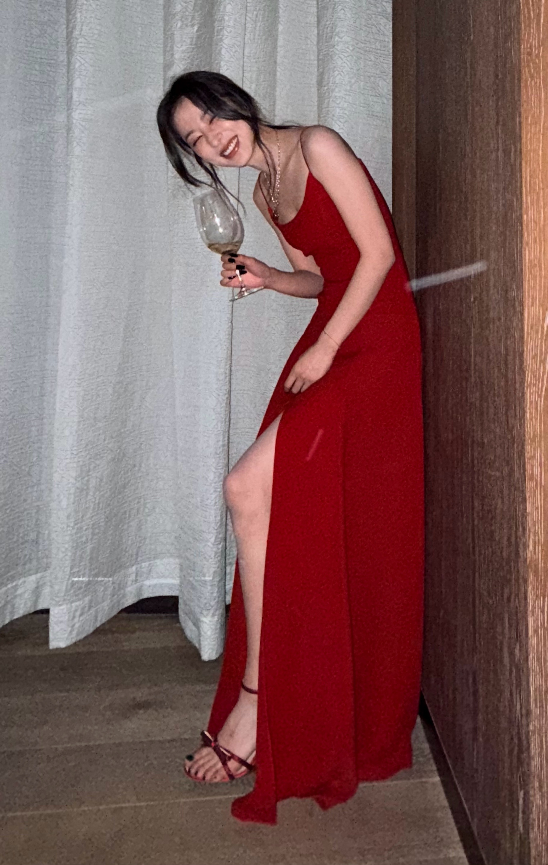 李一桐 天选种田文女主 一桐棕色编制挂脖露背高开叉礼服 大长腿黑色一字带高跟鞋