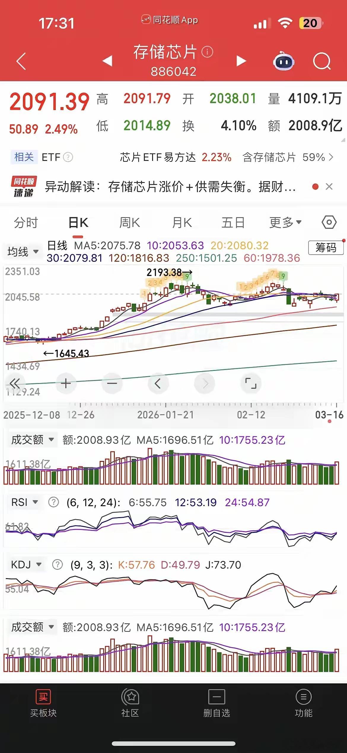 昨天市场深V反转,沪指三针探底,60日均线得而复失,创业板在宁王、迪王助力下,延续强势,目前仍保持5日均线上方运行,压力位在3390附近,昨天两市再度缩量700多亿,目前总成交额维持在2.3万亿以上,情绪一般,资金依旧偏谨慎,板块上昨天存储芯片大爆发,深海科技、航运板块领涨,农业、大消费等老登方向迎来补涨,而贵金属、化工、电力,钢铁等前期热门标的迎来补跌,目前看市场资金开始从高位的周期板块,慢慢流向超跌已久的科技方向,而半导体方向成了资金的首选,接下来市场要想走的远,还得看它持续性如何,还有银行股表现。